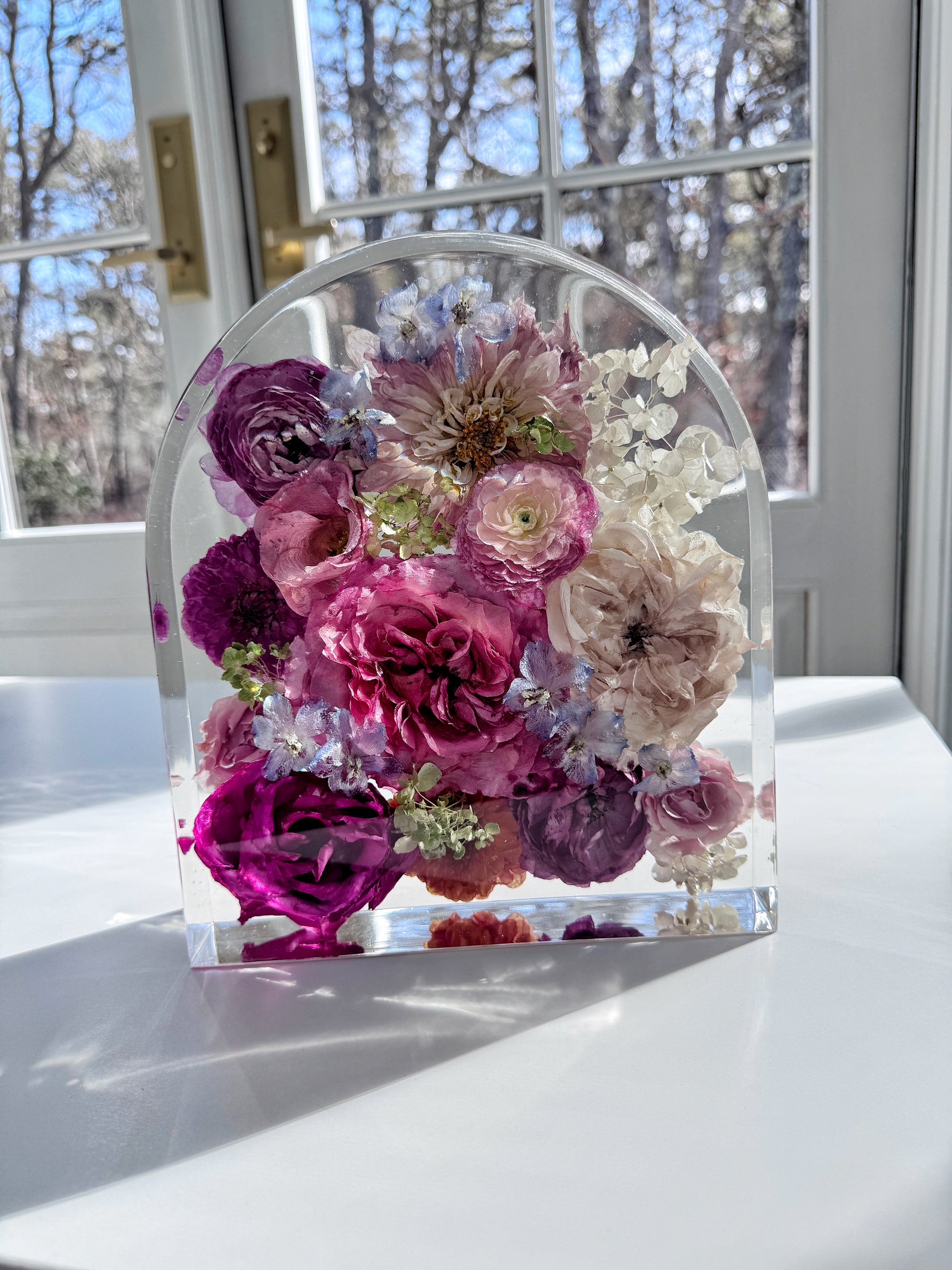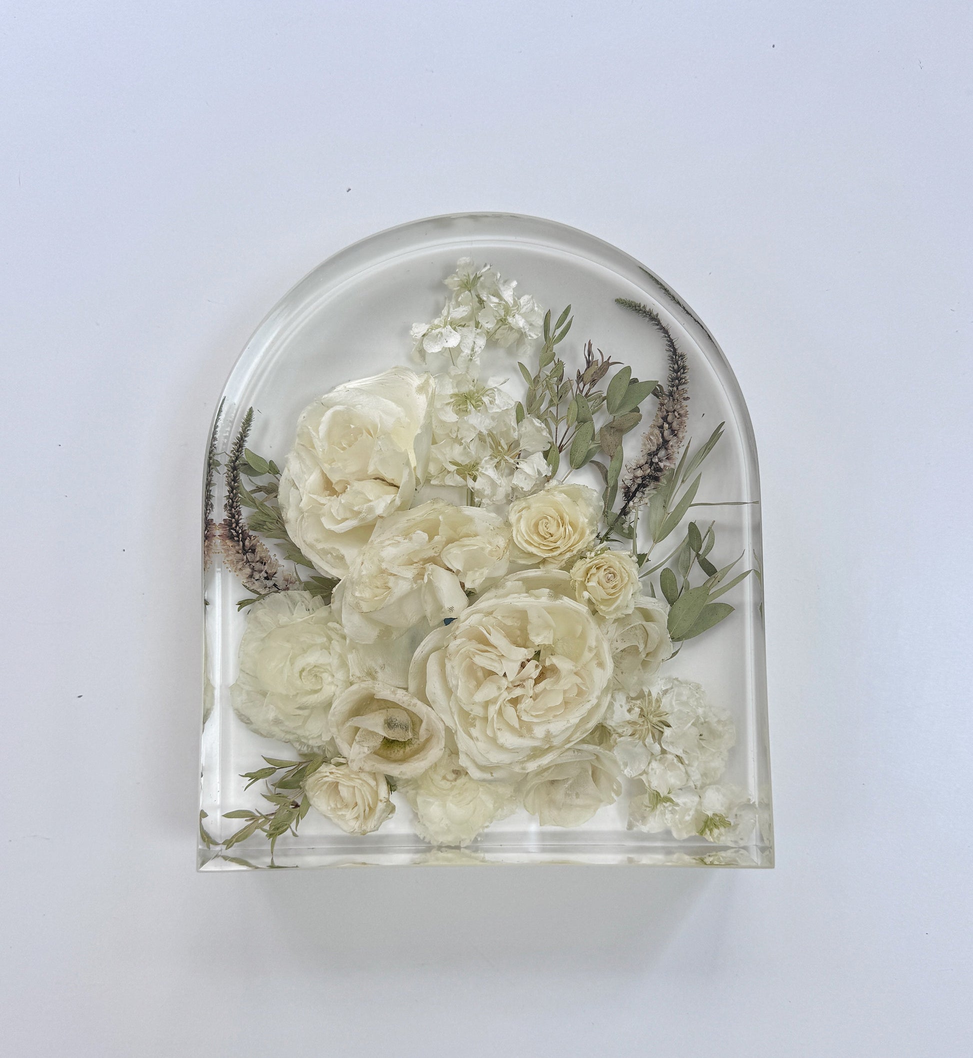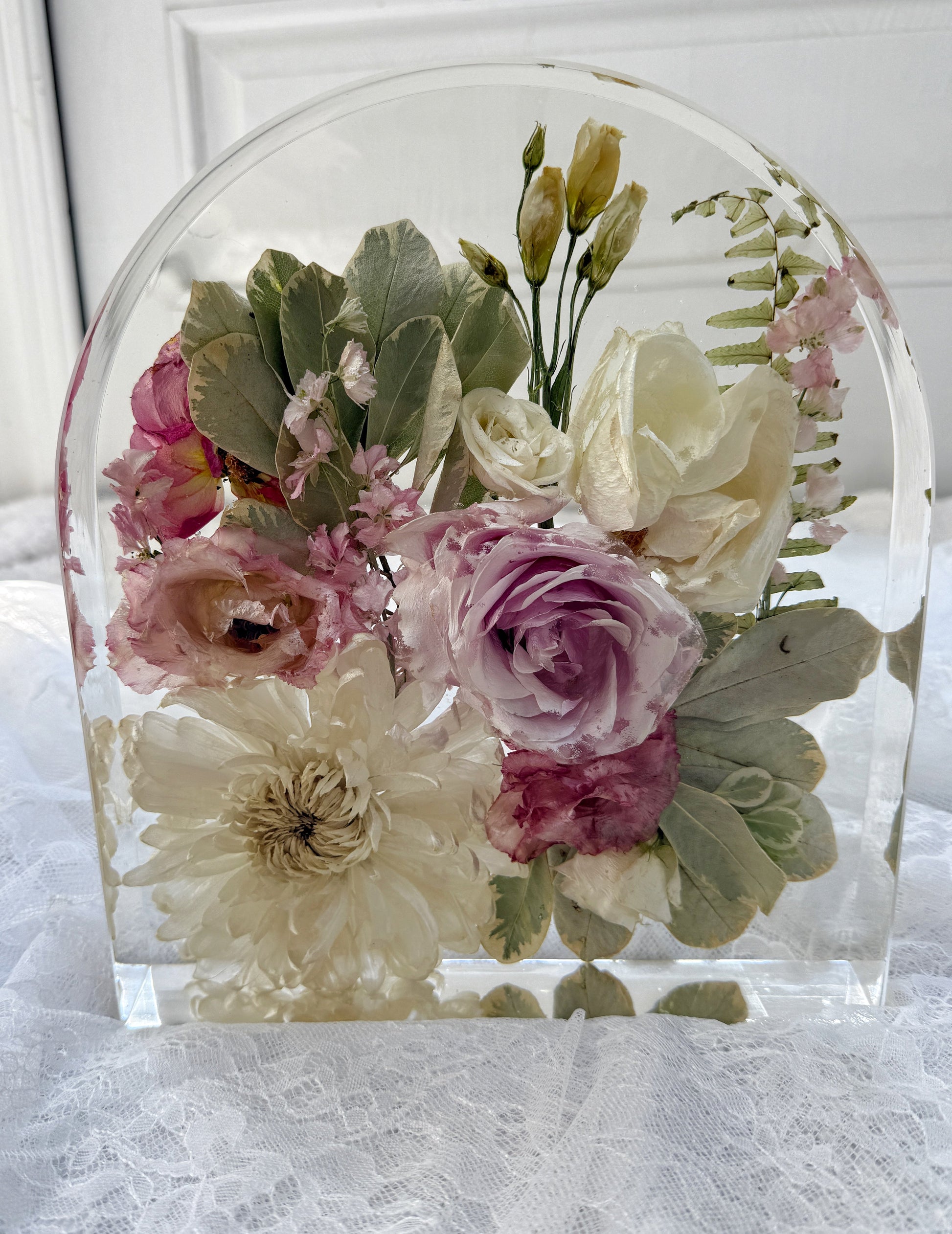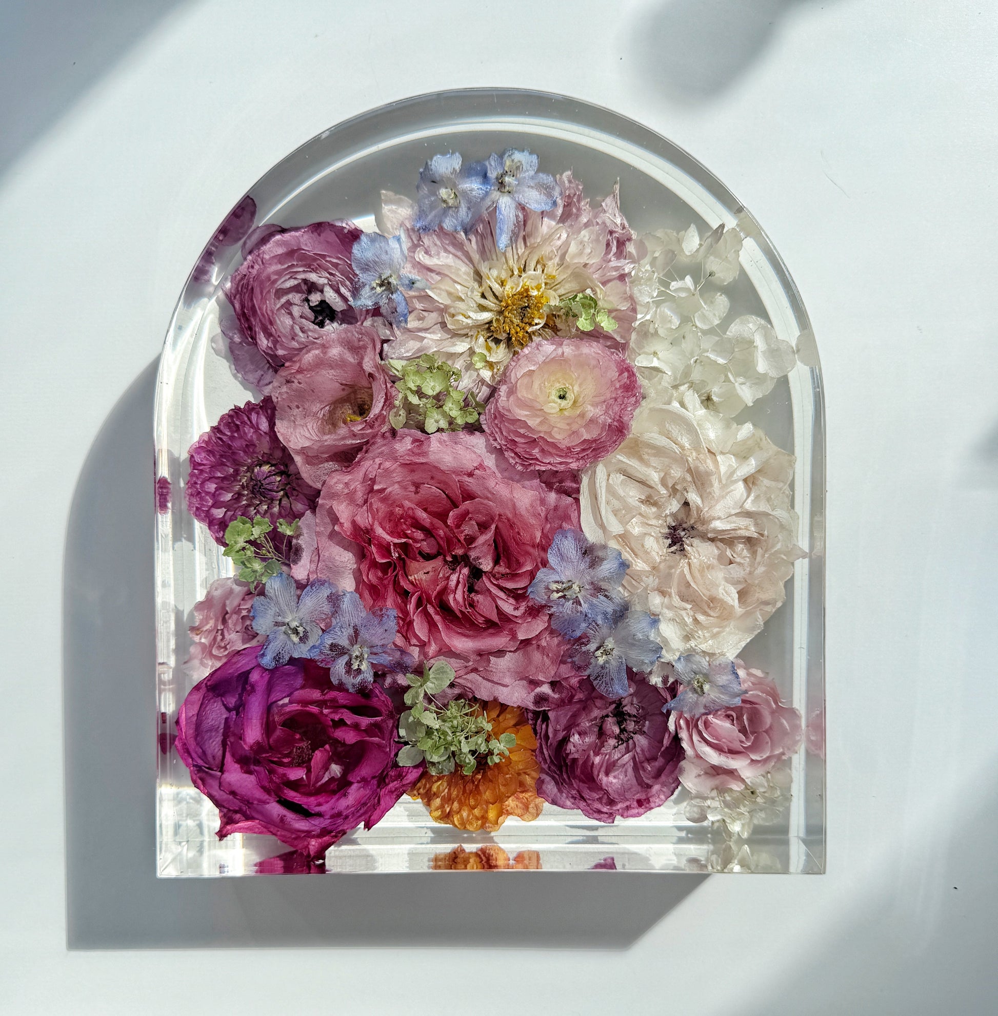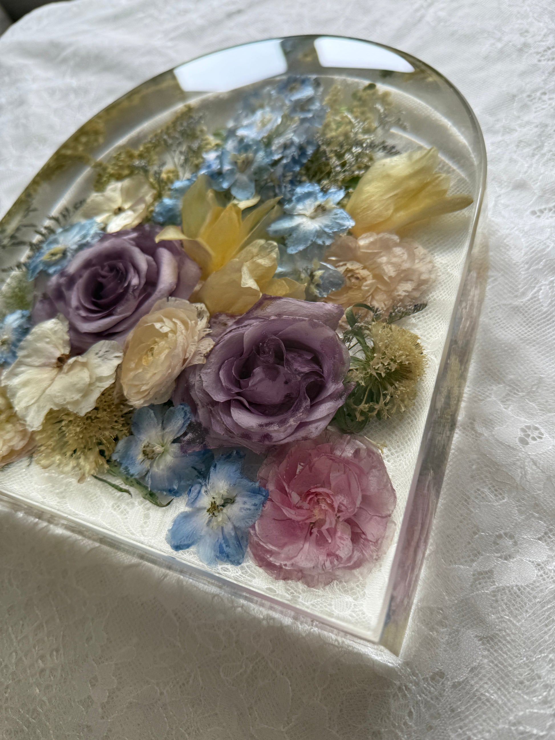 This square display piece beautifully preserves your flowers in a solid. elegant form. making it a timeless addition to your home décor.