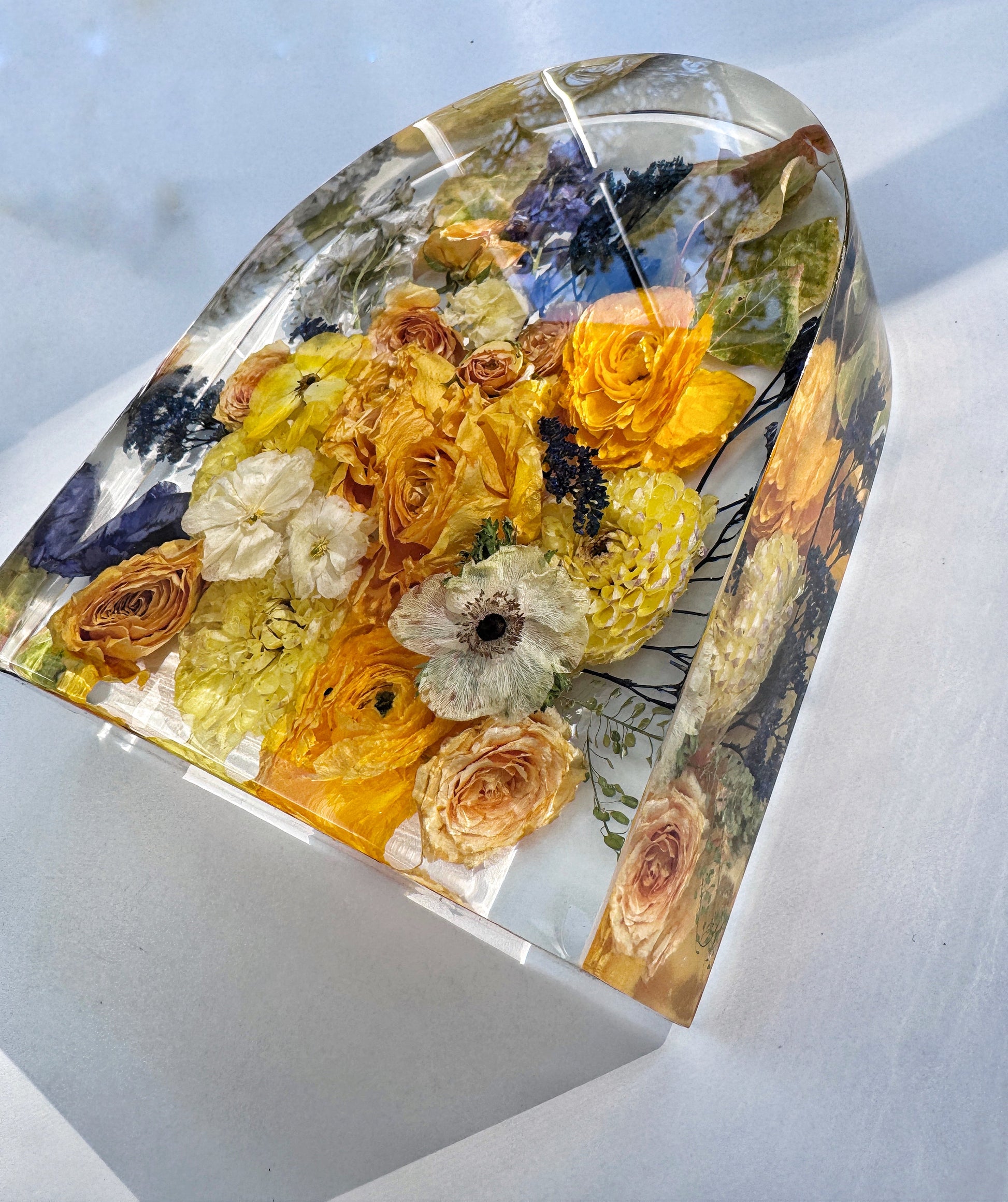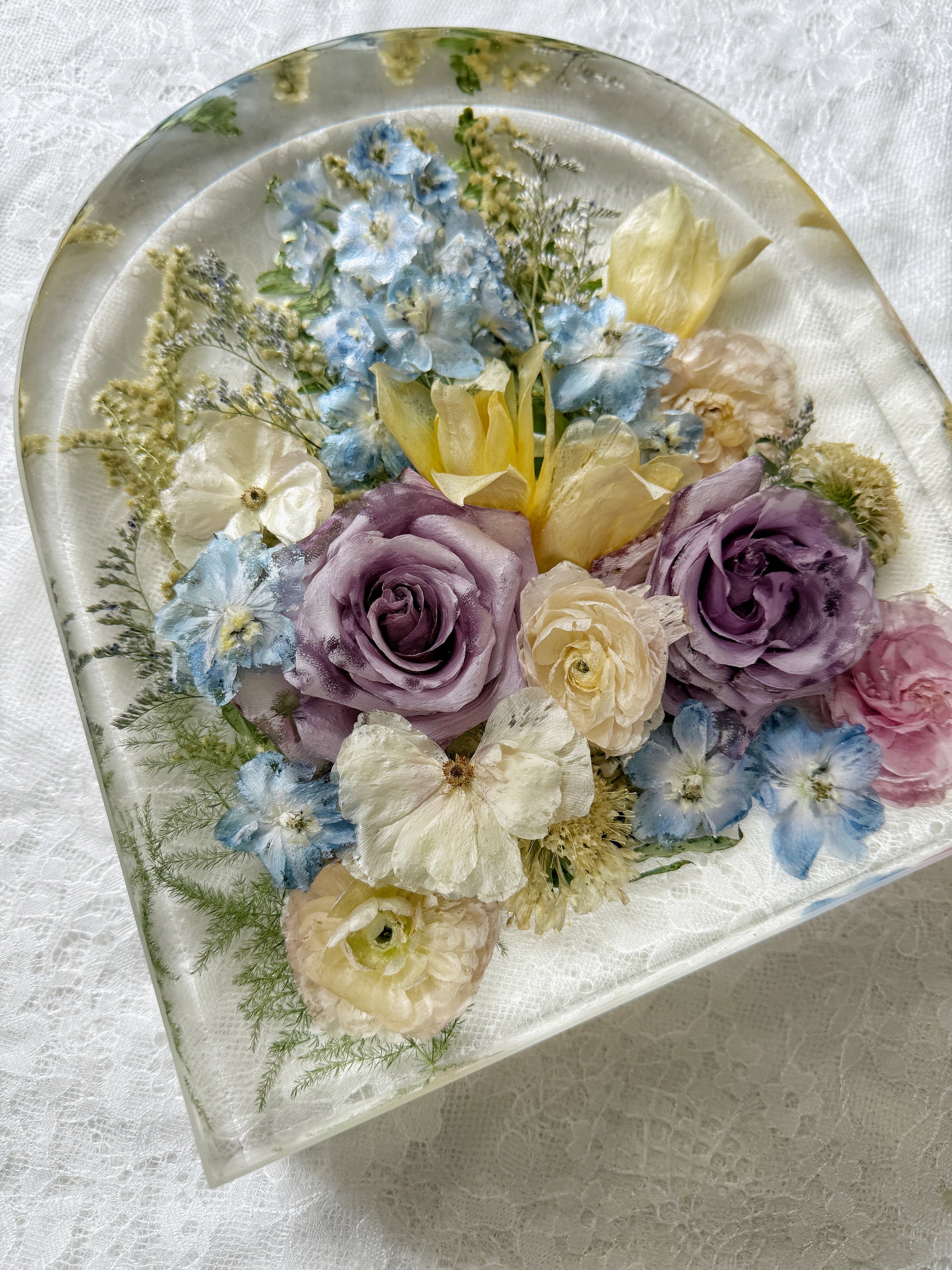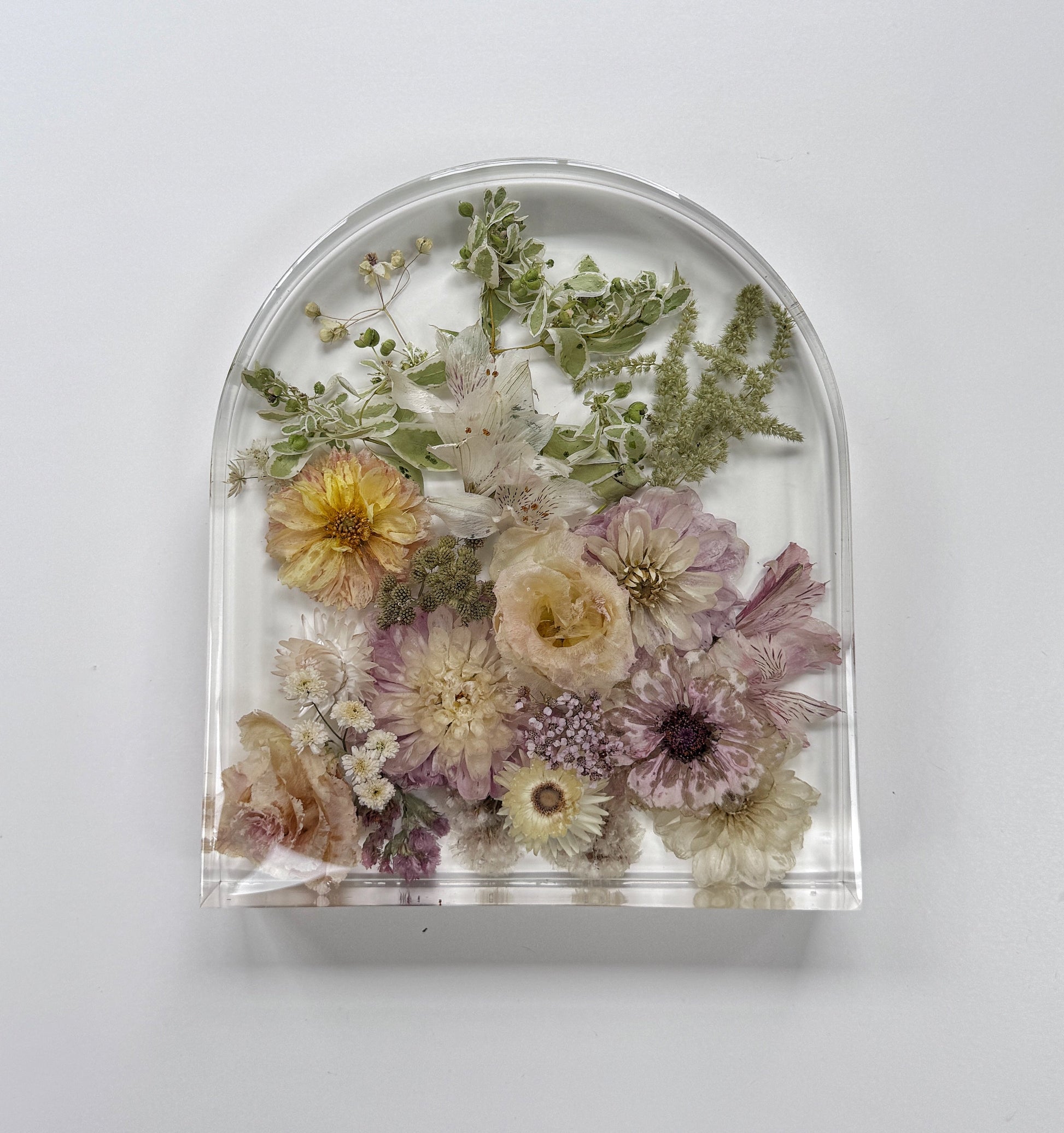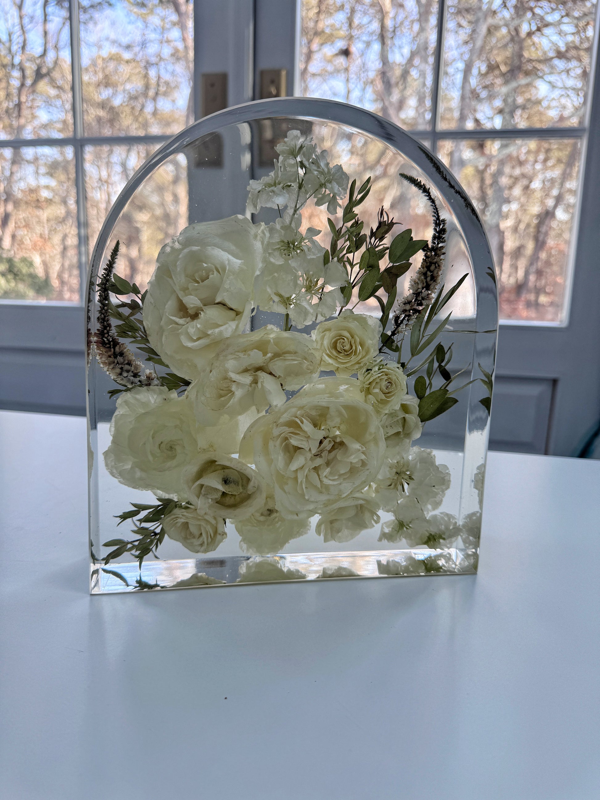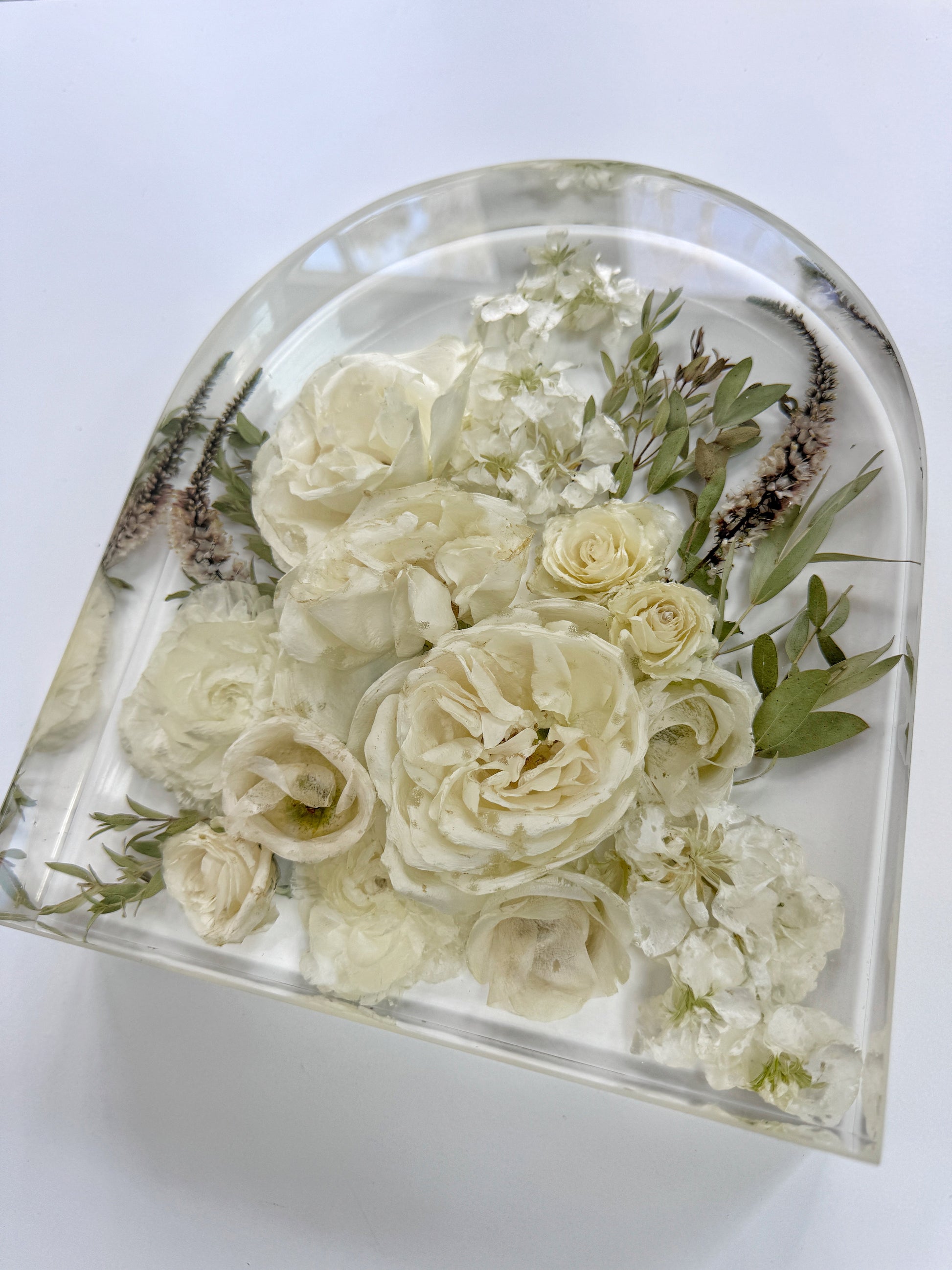 This square display piece beautifully preserves your flowers in a solid. elegant form. making it a timeless addition to your home décor.