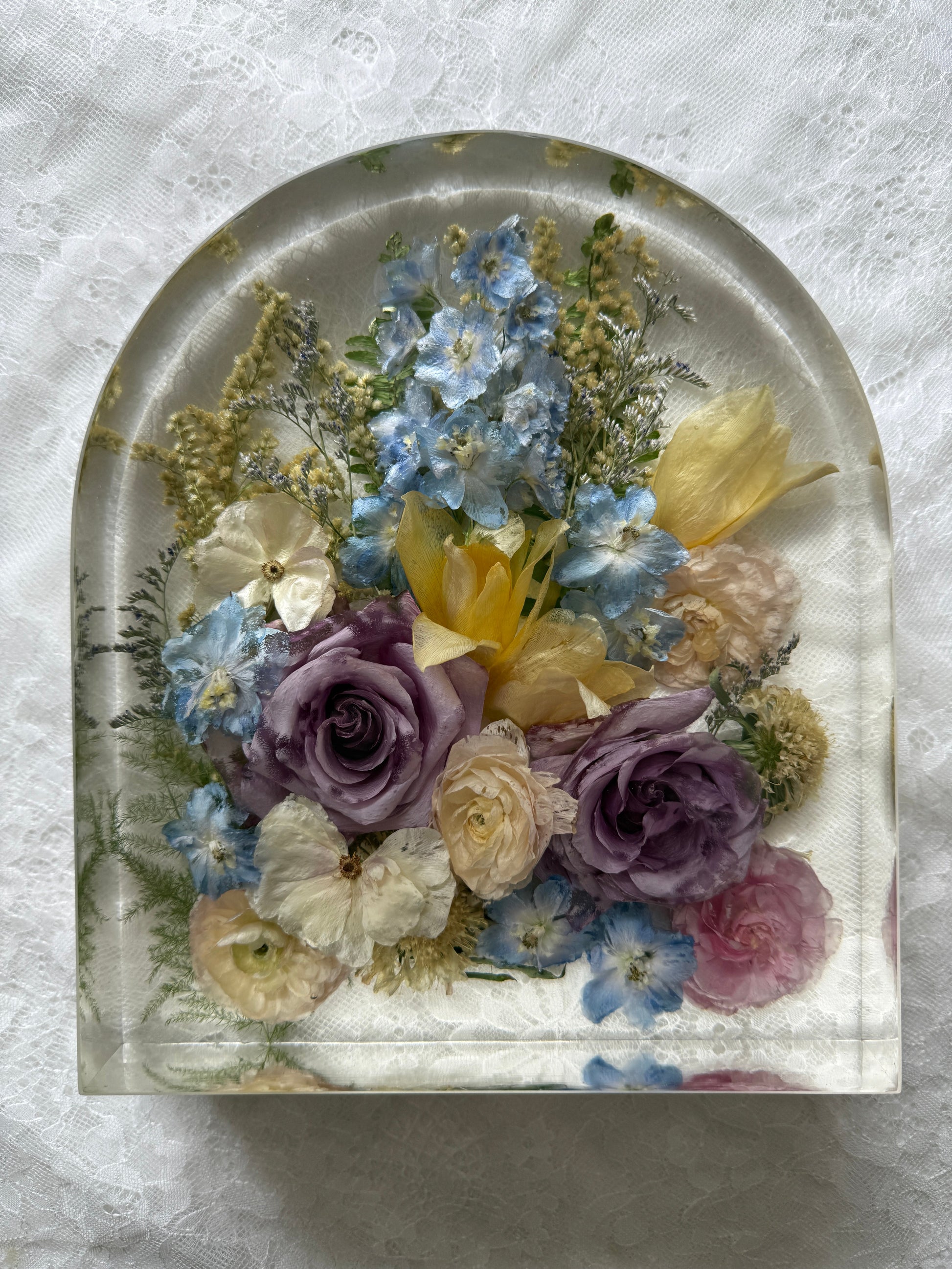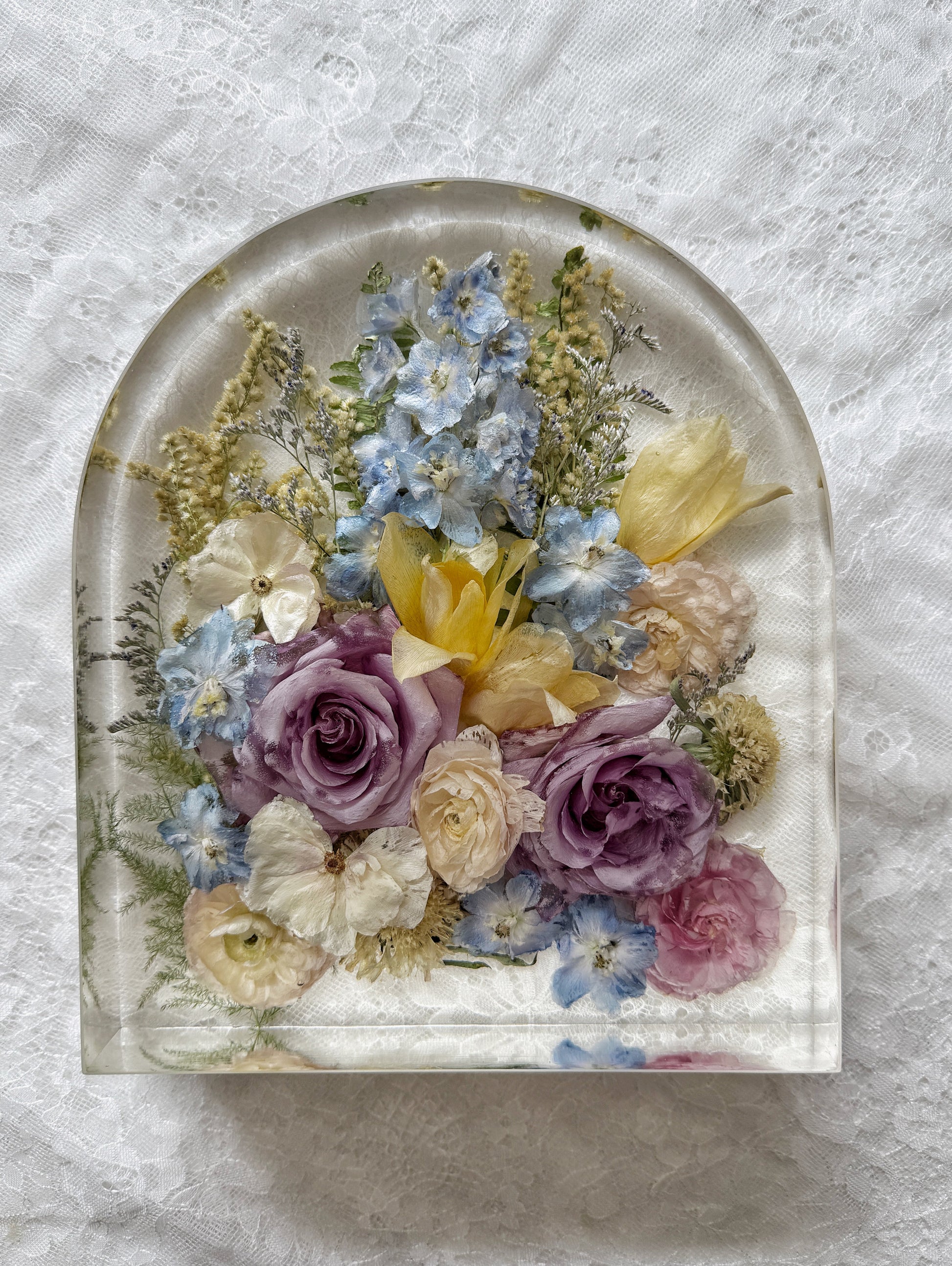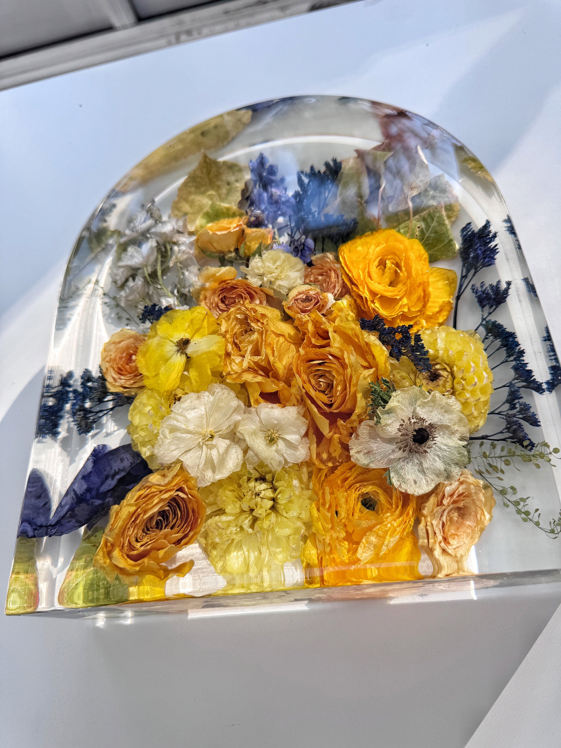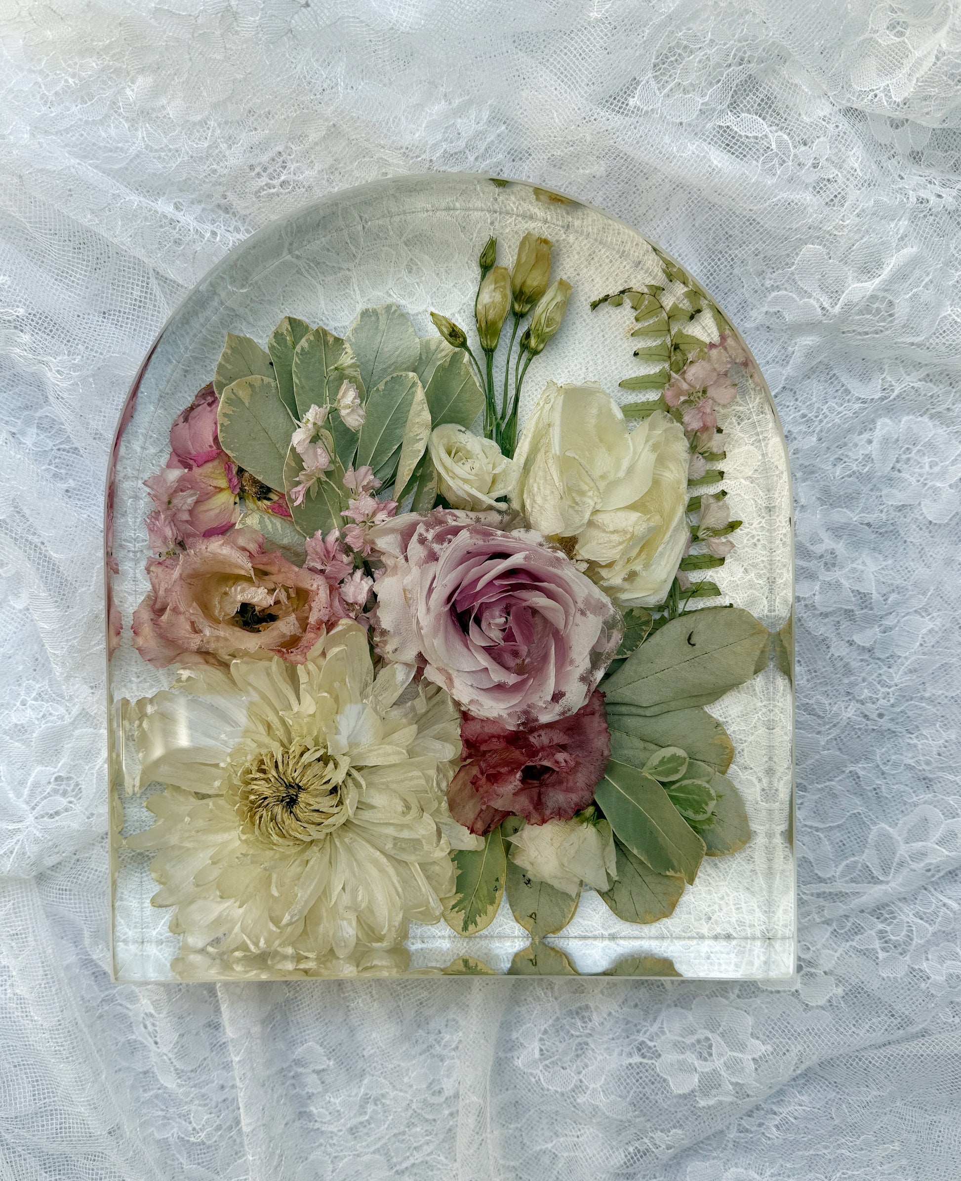 This square display piece beautifully preserves your flowers in a solid. elegant form. making it a timeless addition to your home décor.