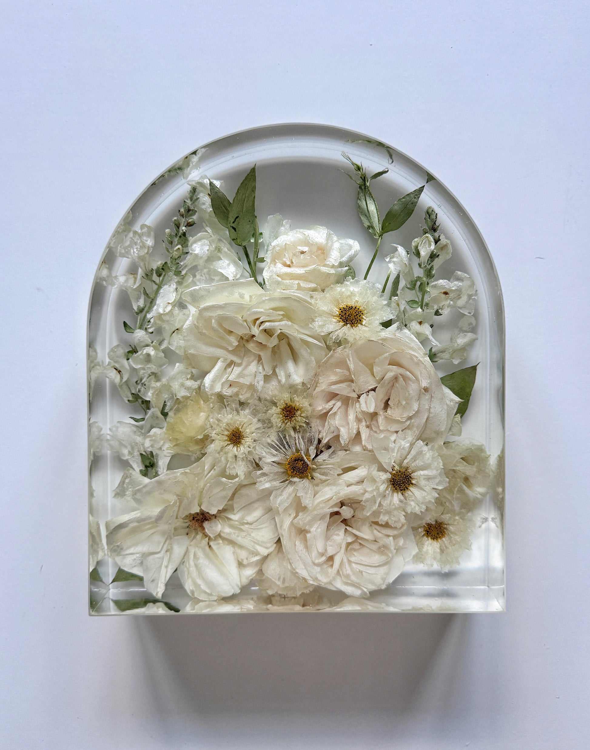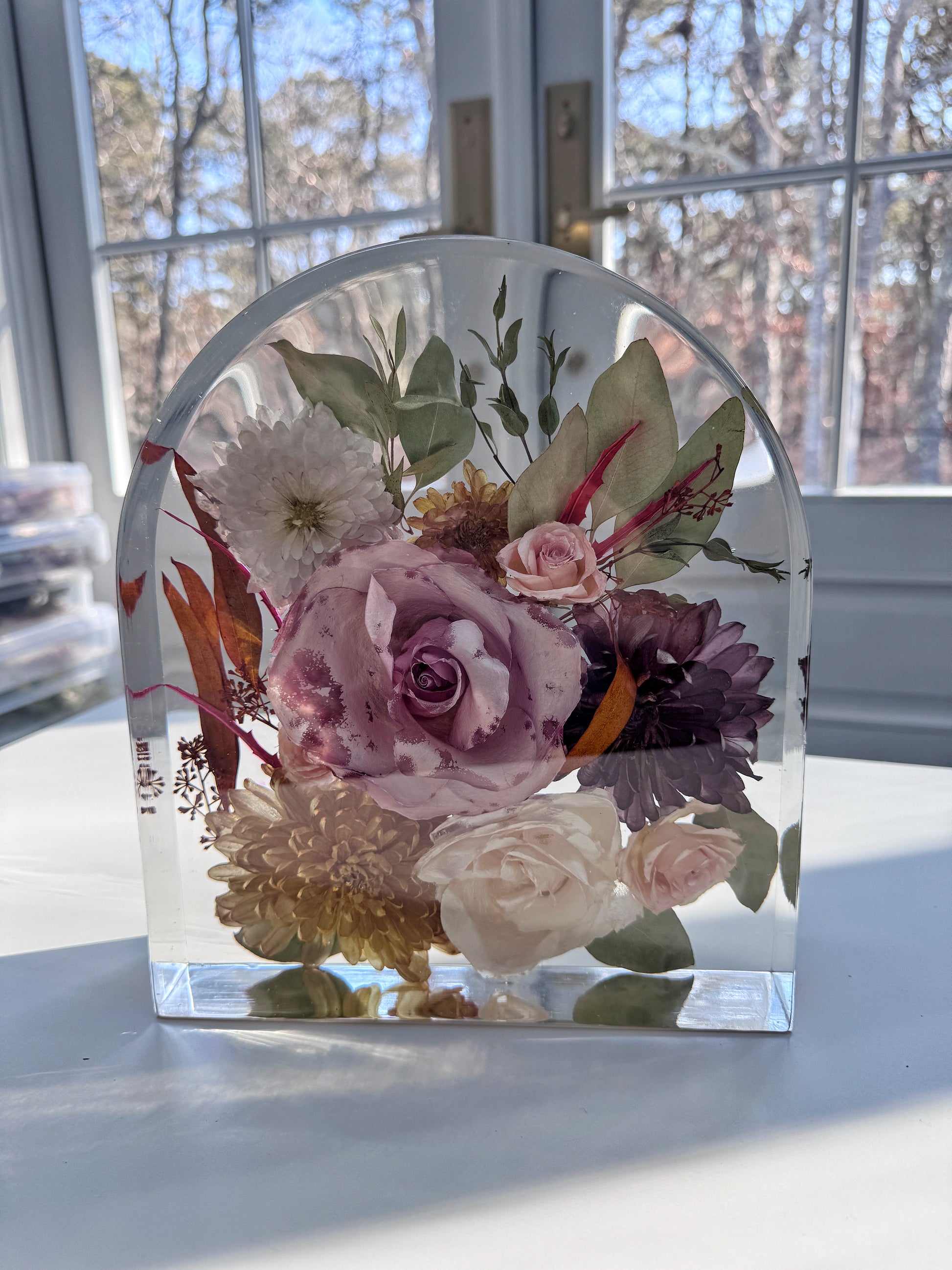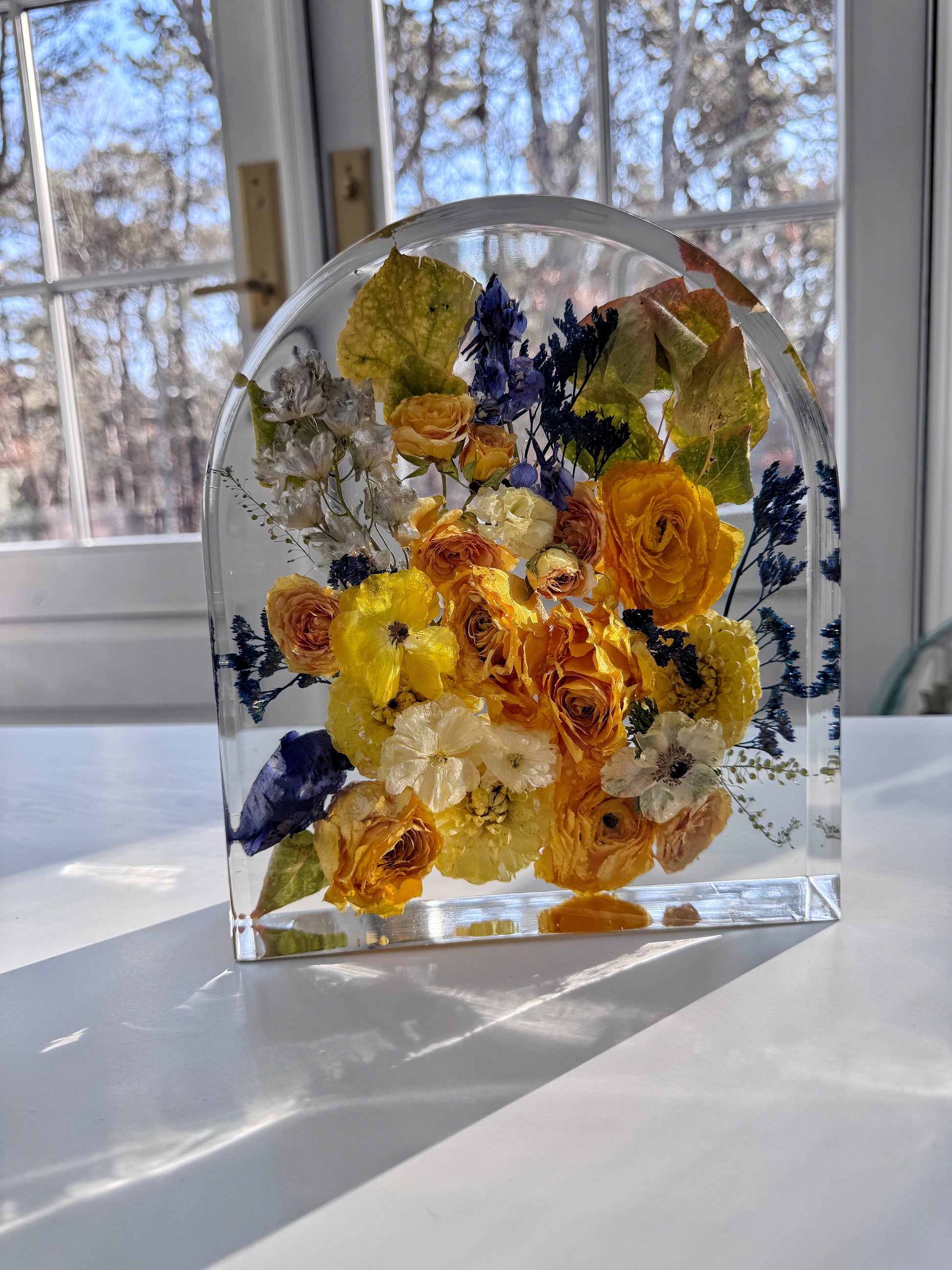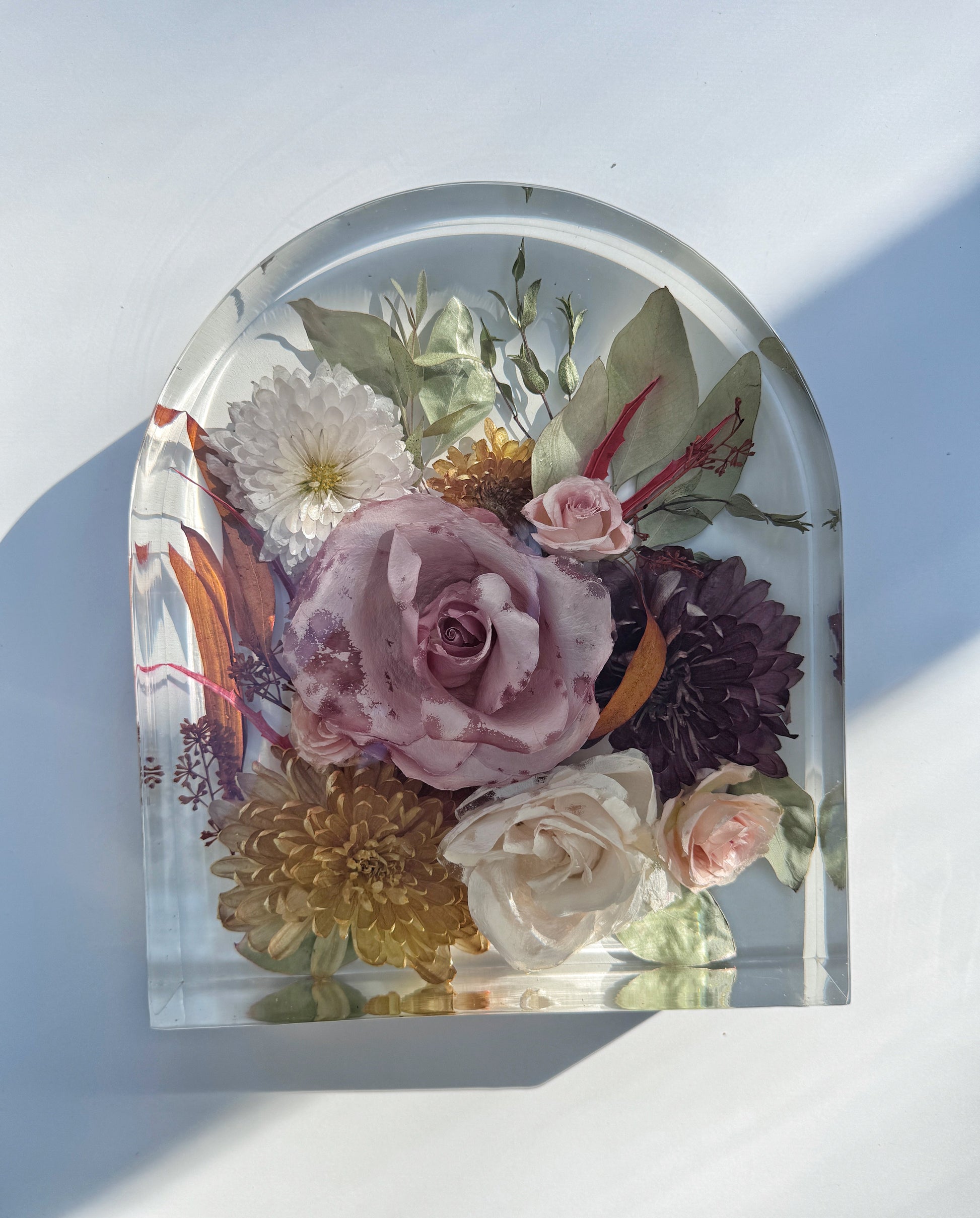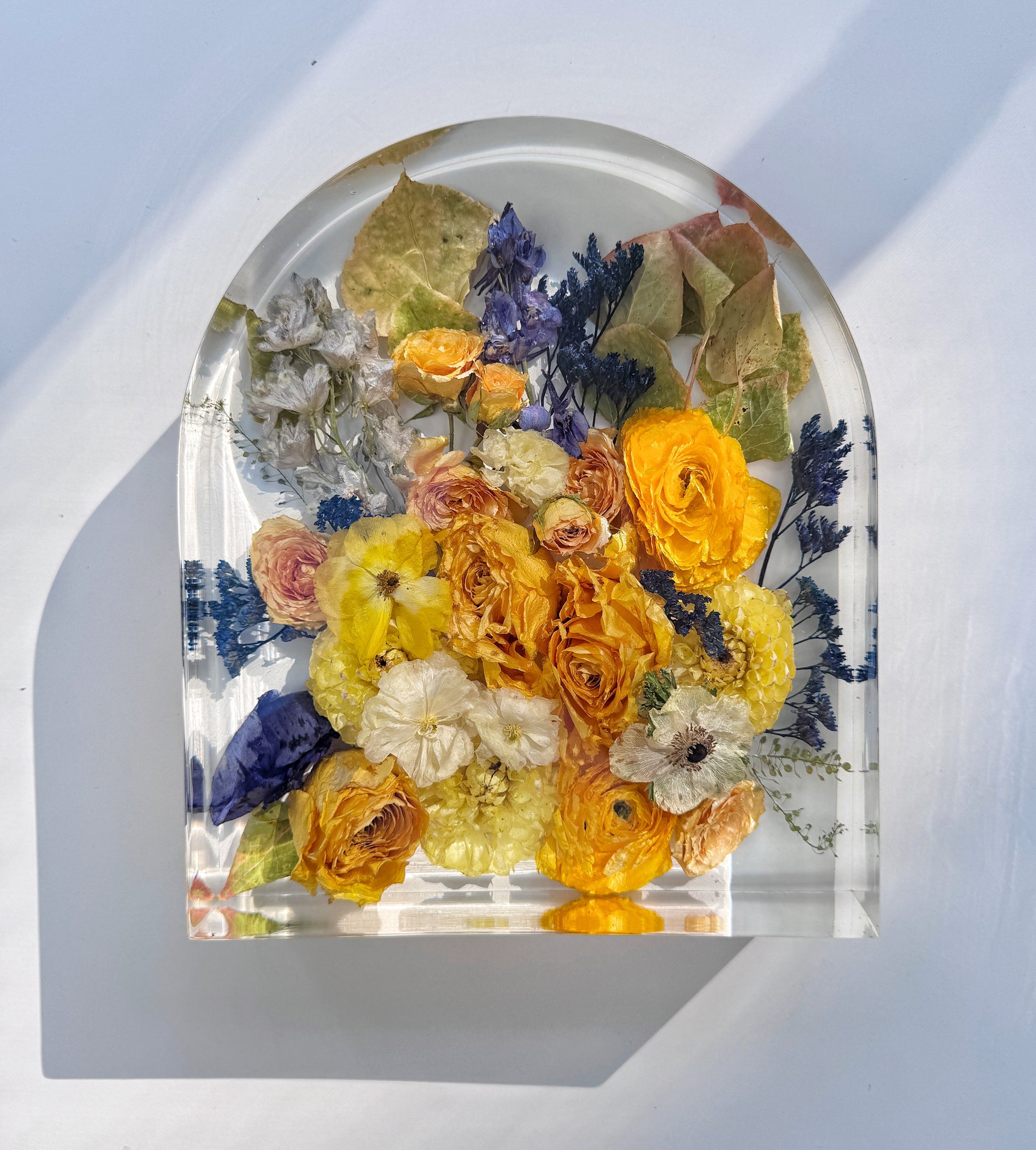 This square display piece beautifully preserves your flowers in a solid. elegant form. making it a timeless addition to your home décor.