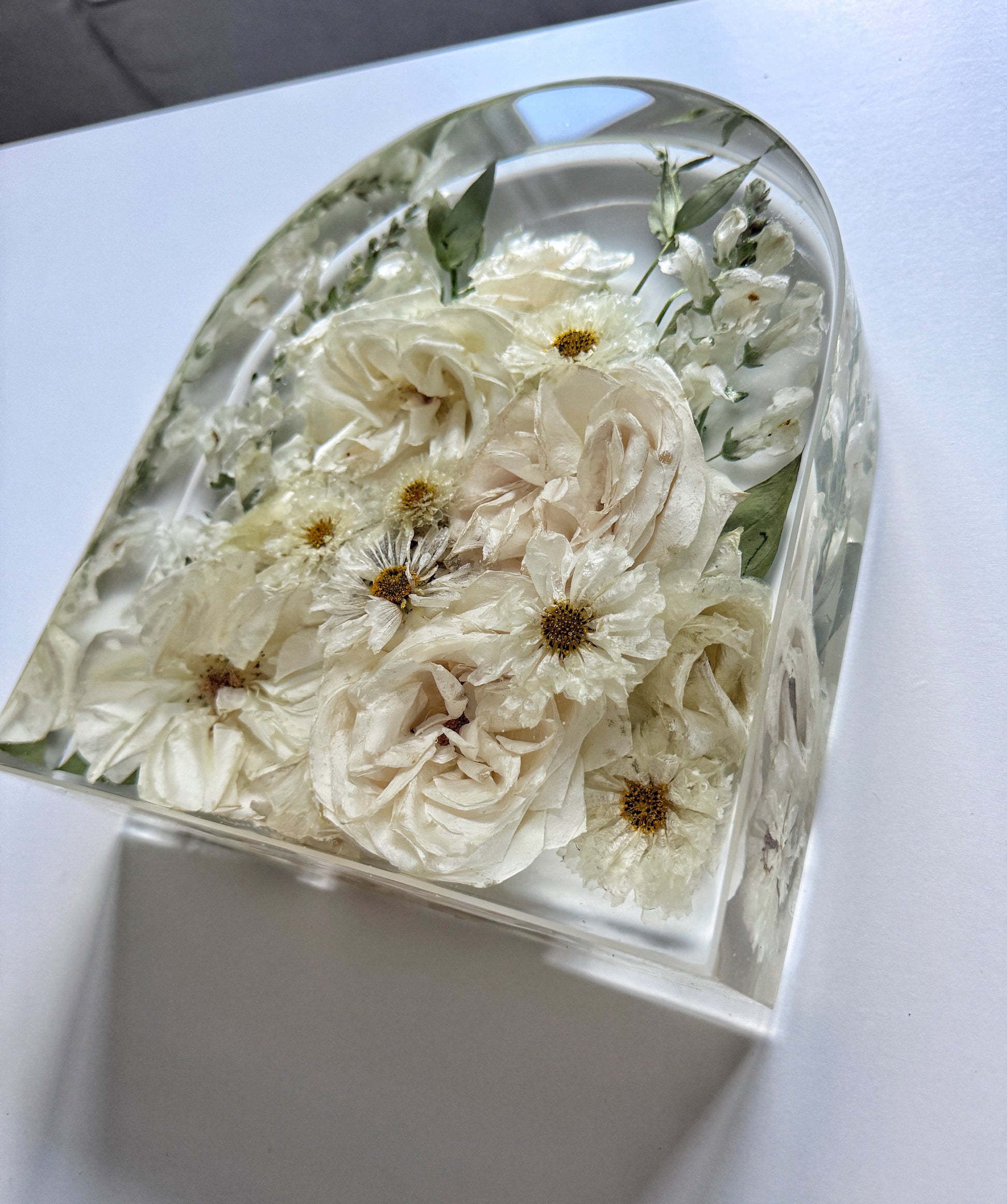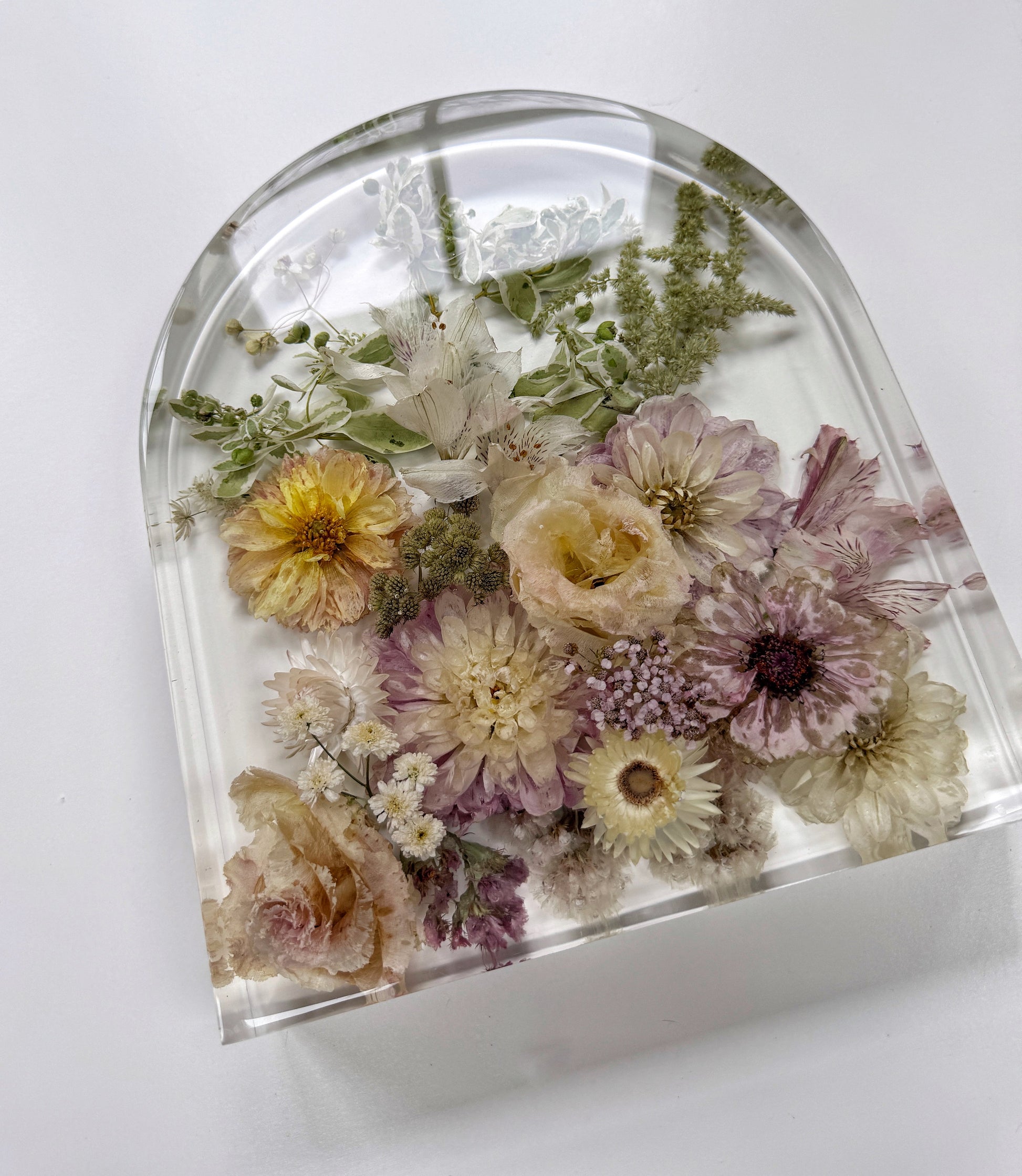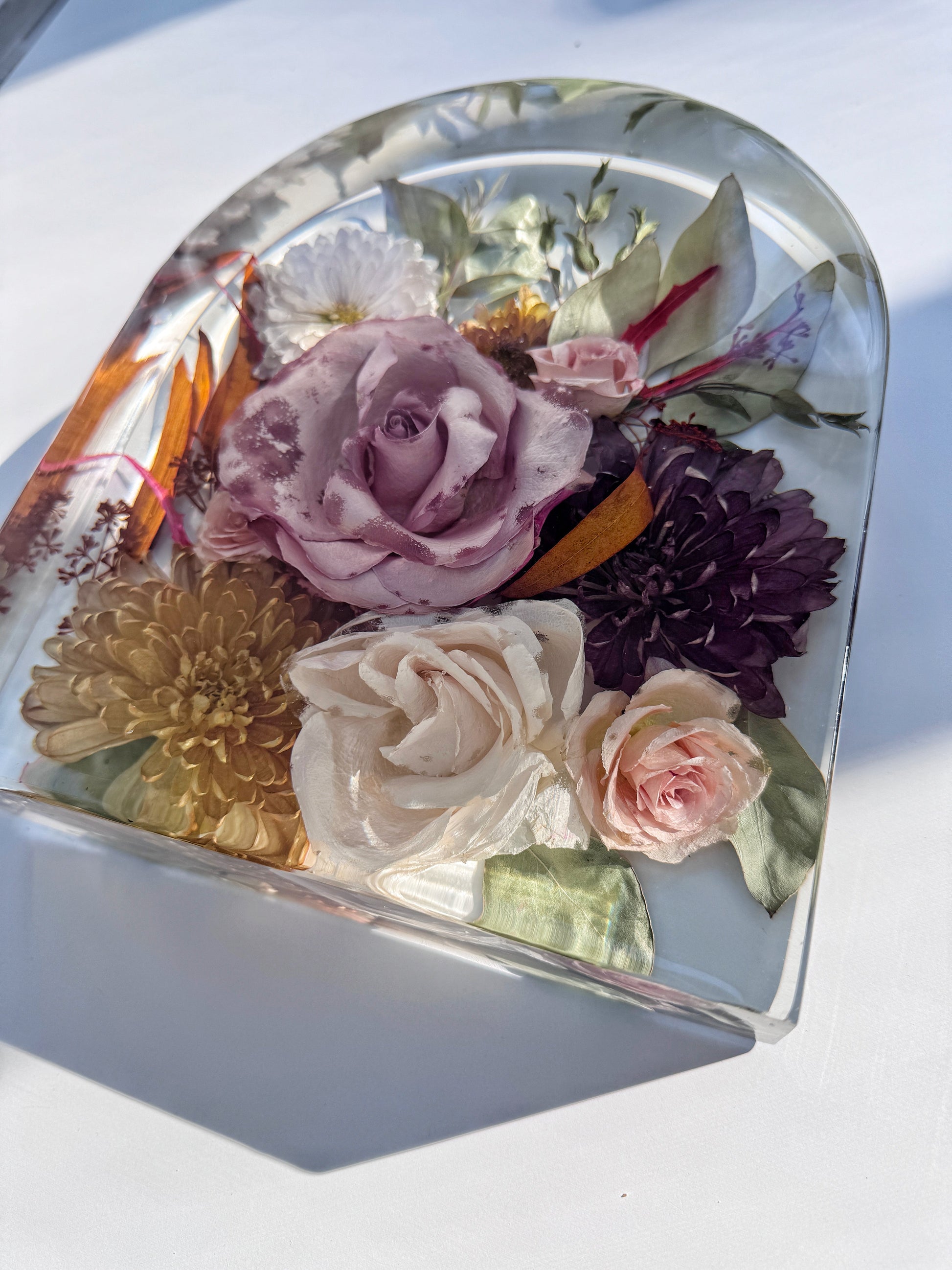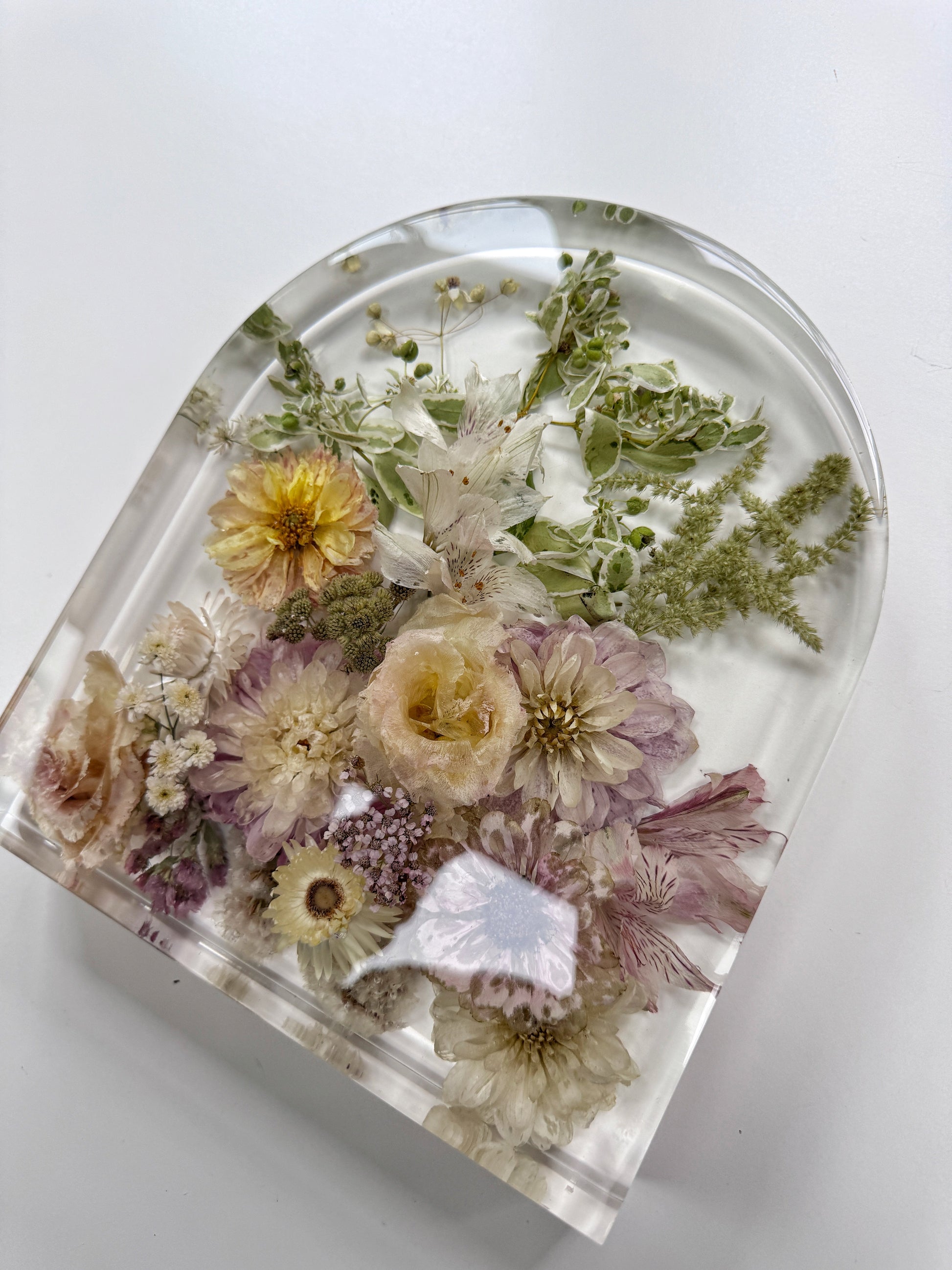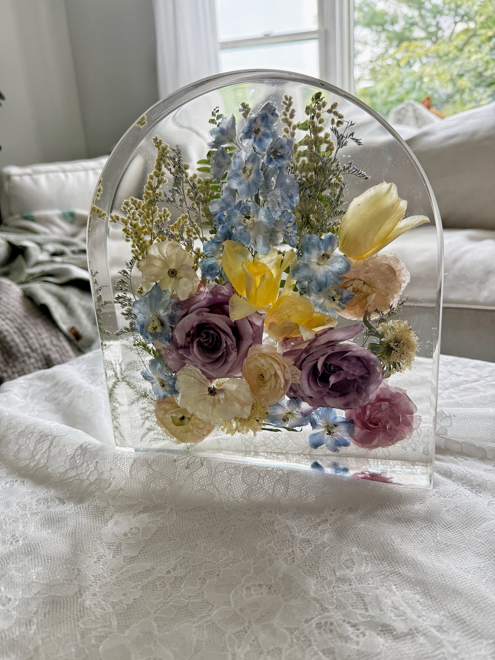 This square display piece beautifully preserves your flowers in a solid. elegant form. making it a timeless addition to your home décor.