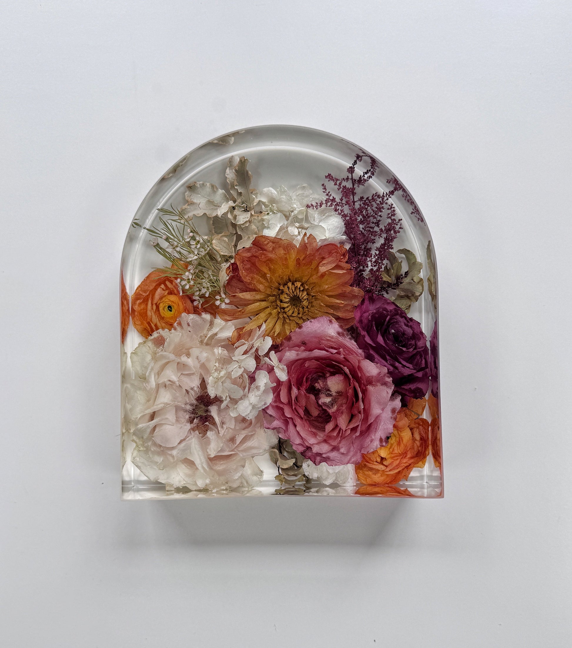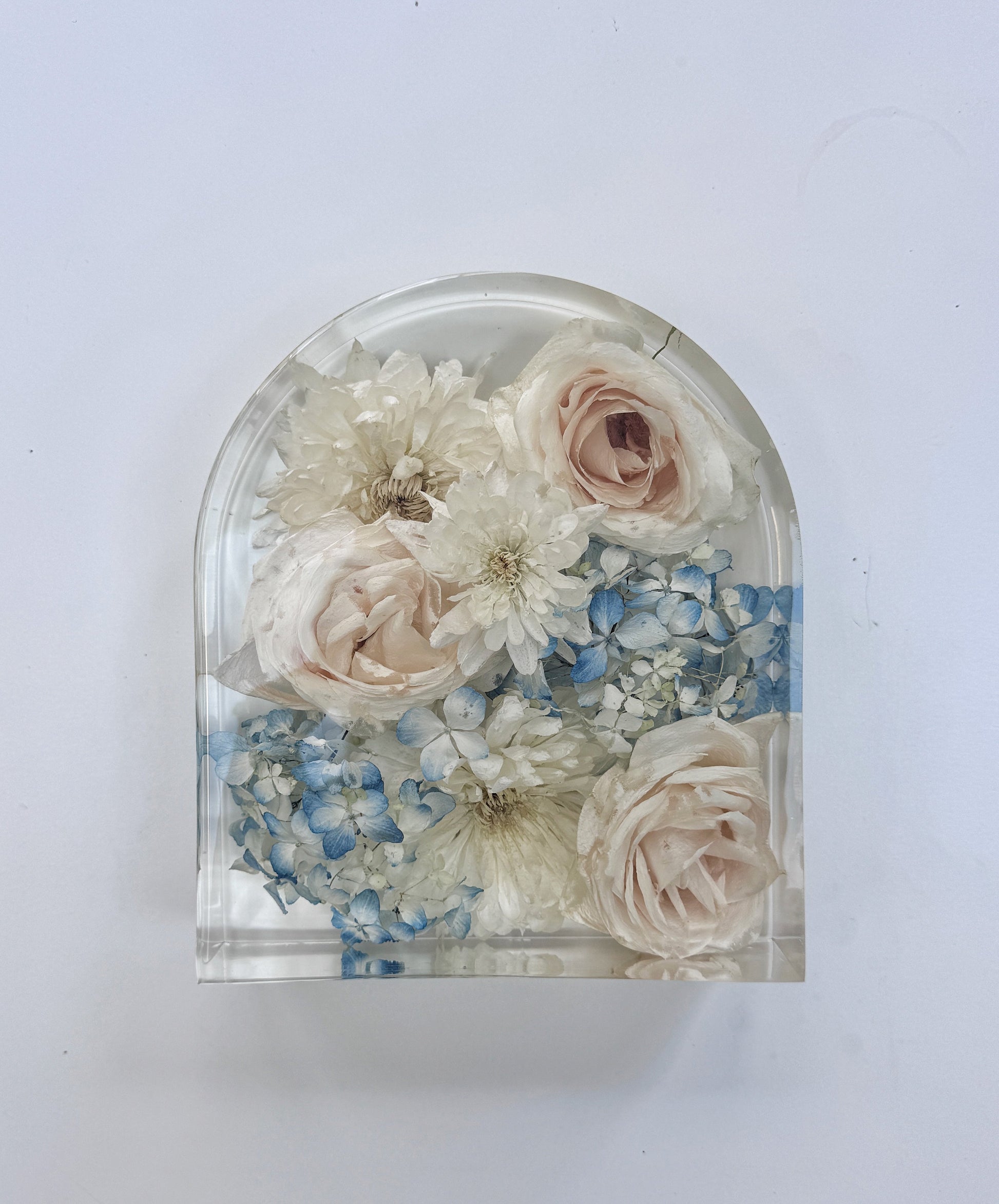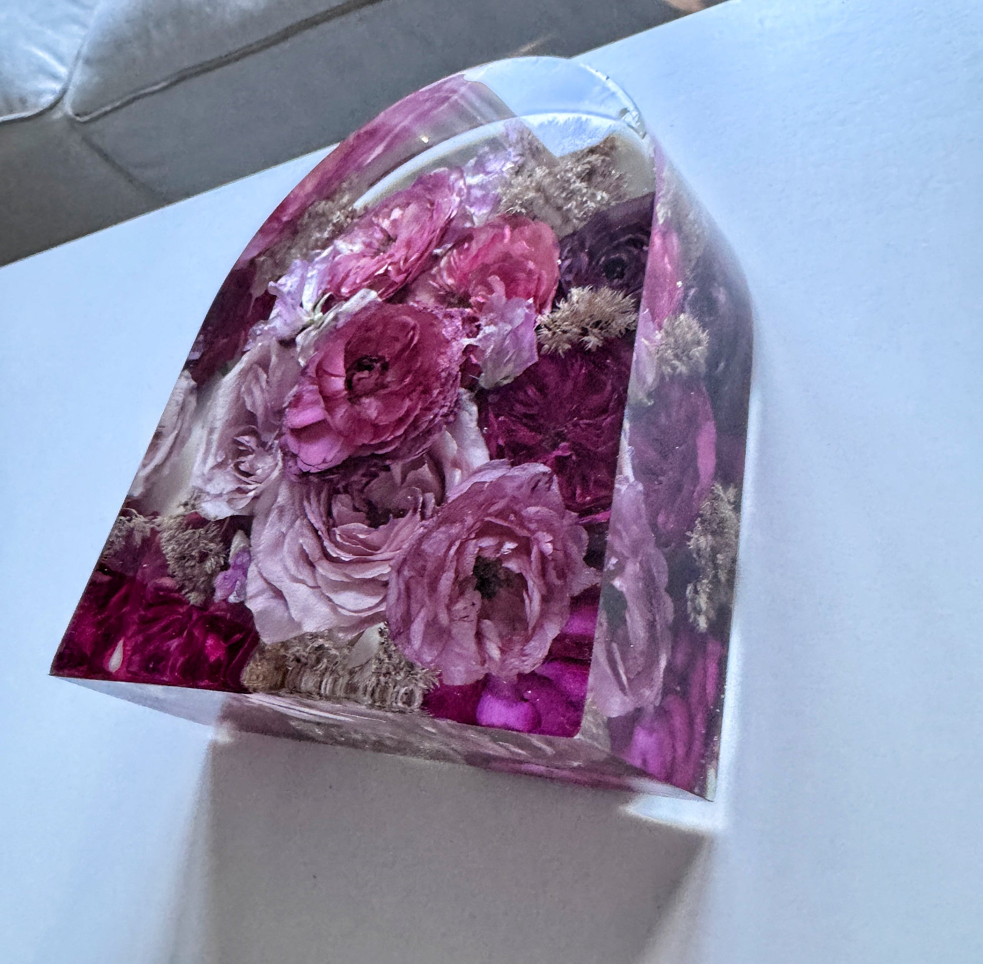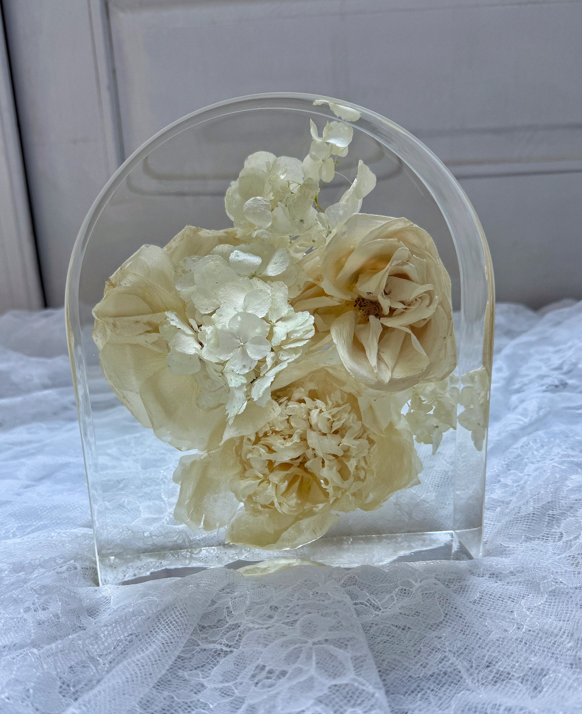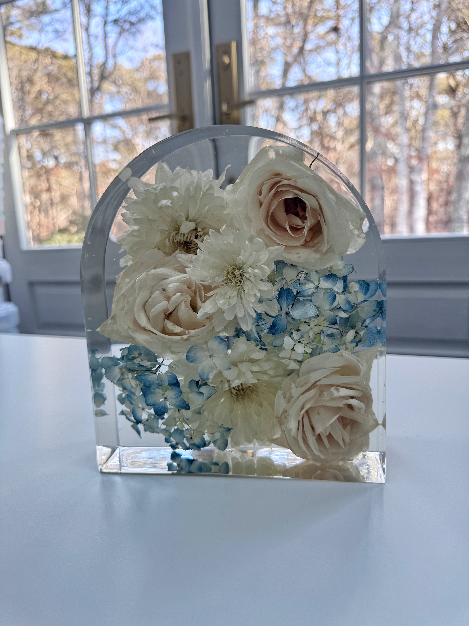 This square display piece beautifully preserves your flowers in a solid. elegant form. making it a timeless addition to your home décor.
