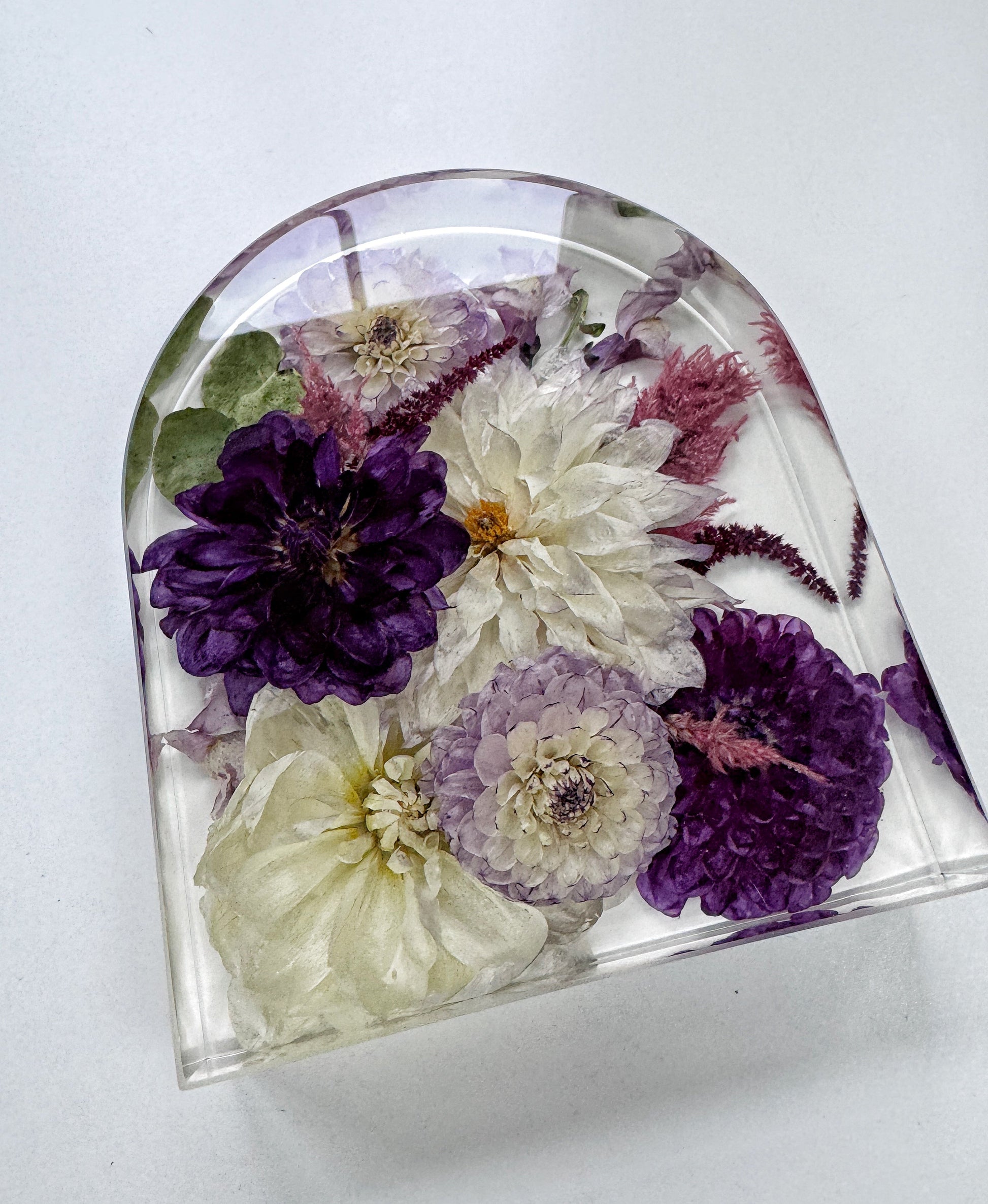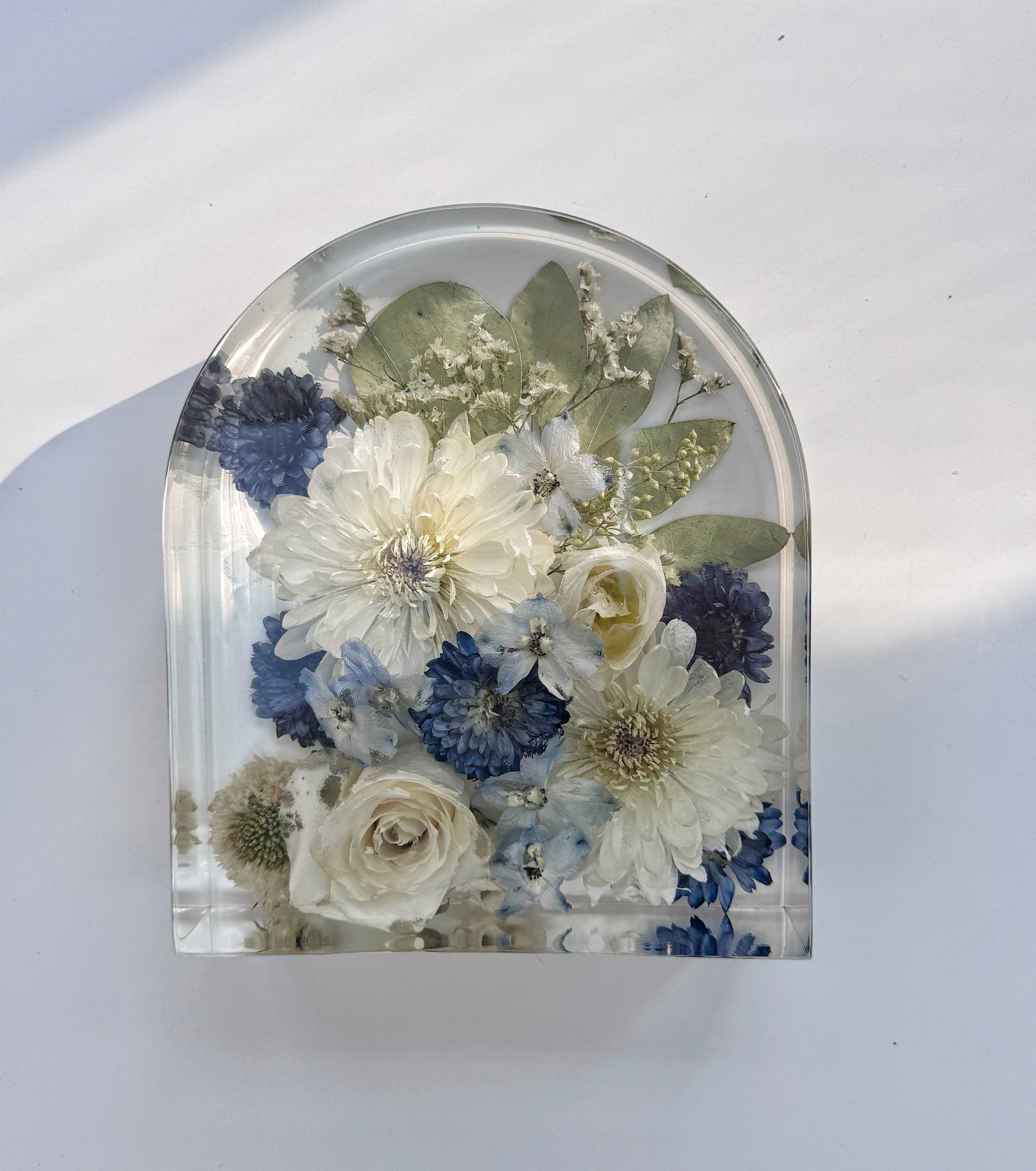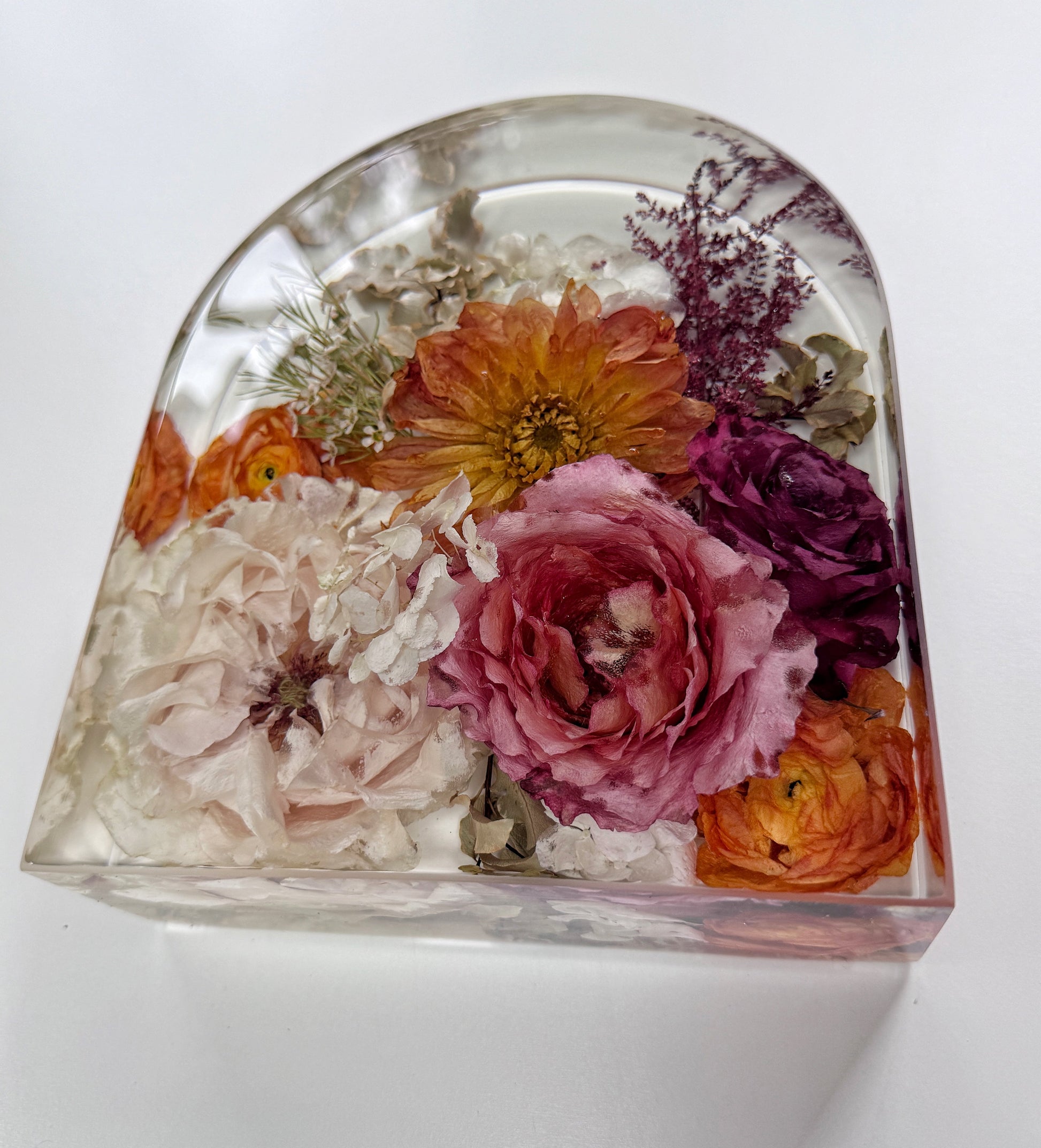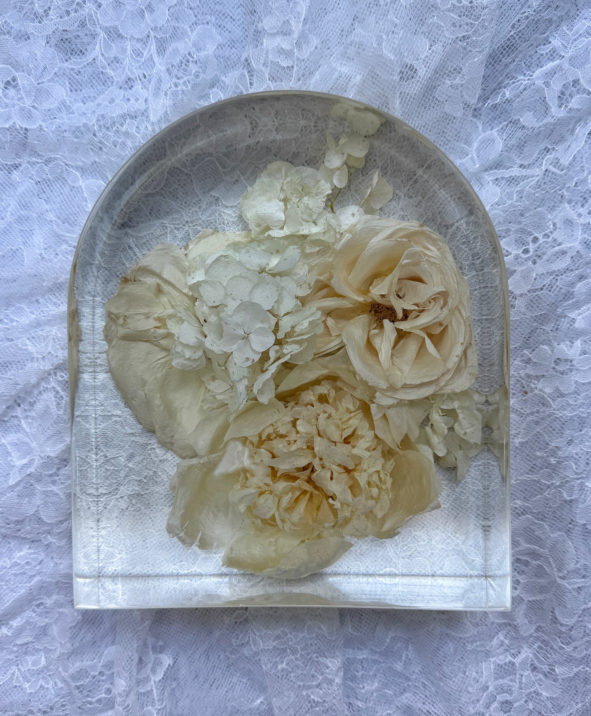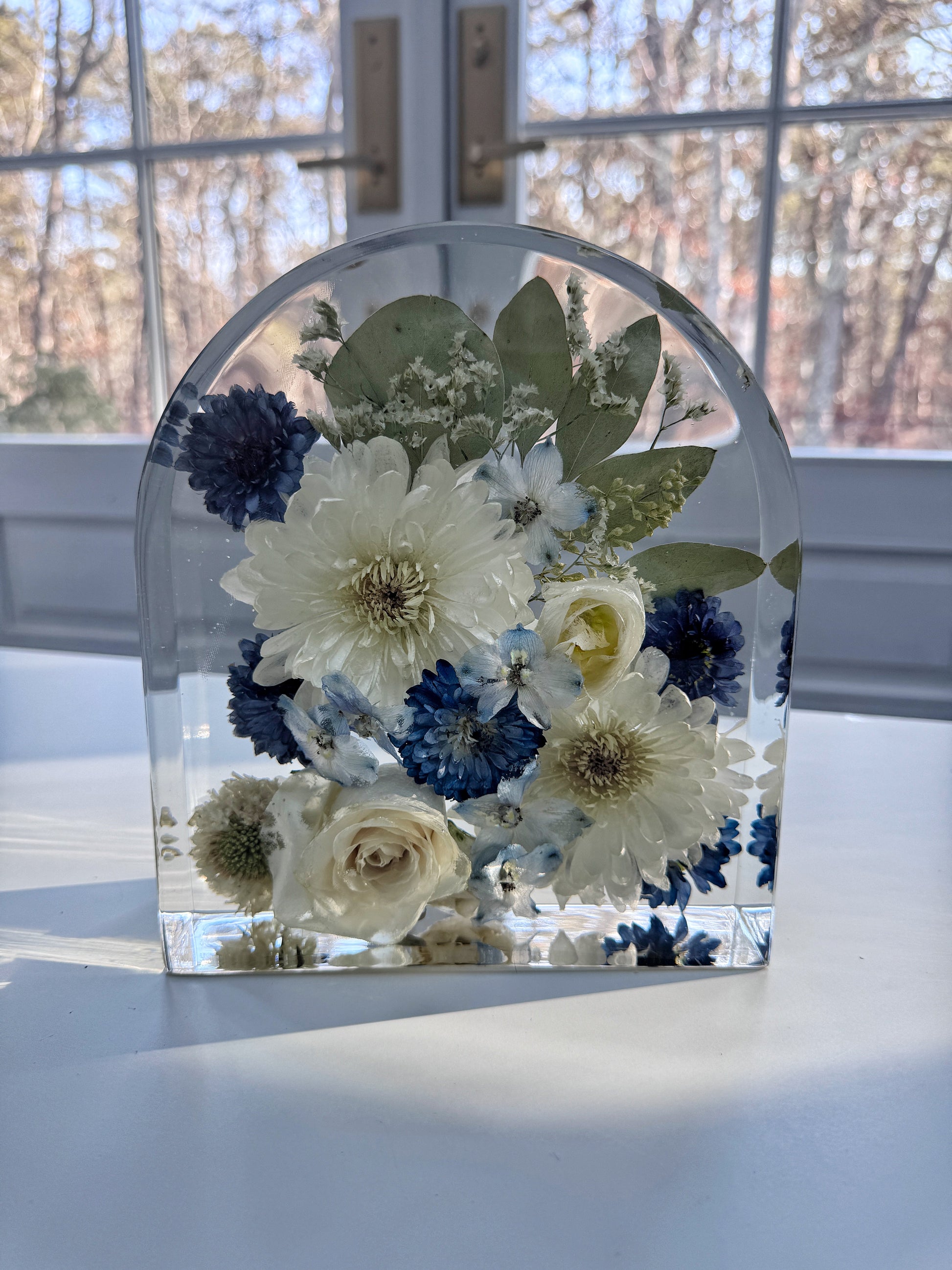 This square display piece beautifully preserves your flowers in a solid. elegant form. making it a timeless addition to your home décor.