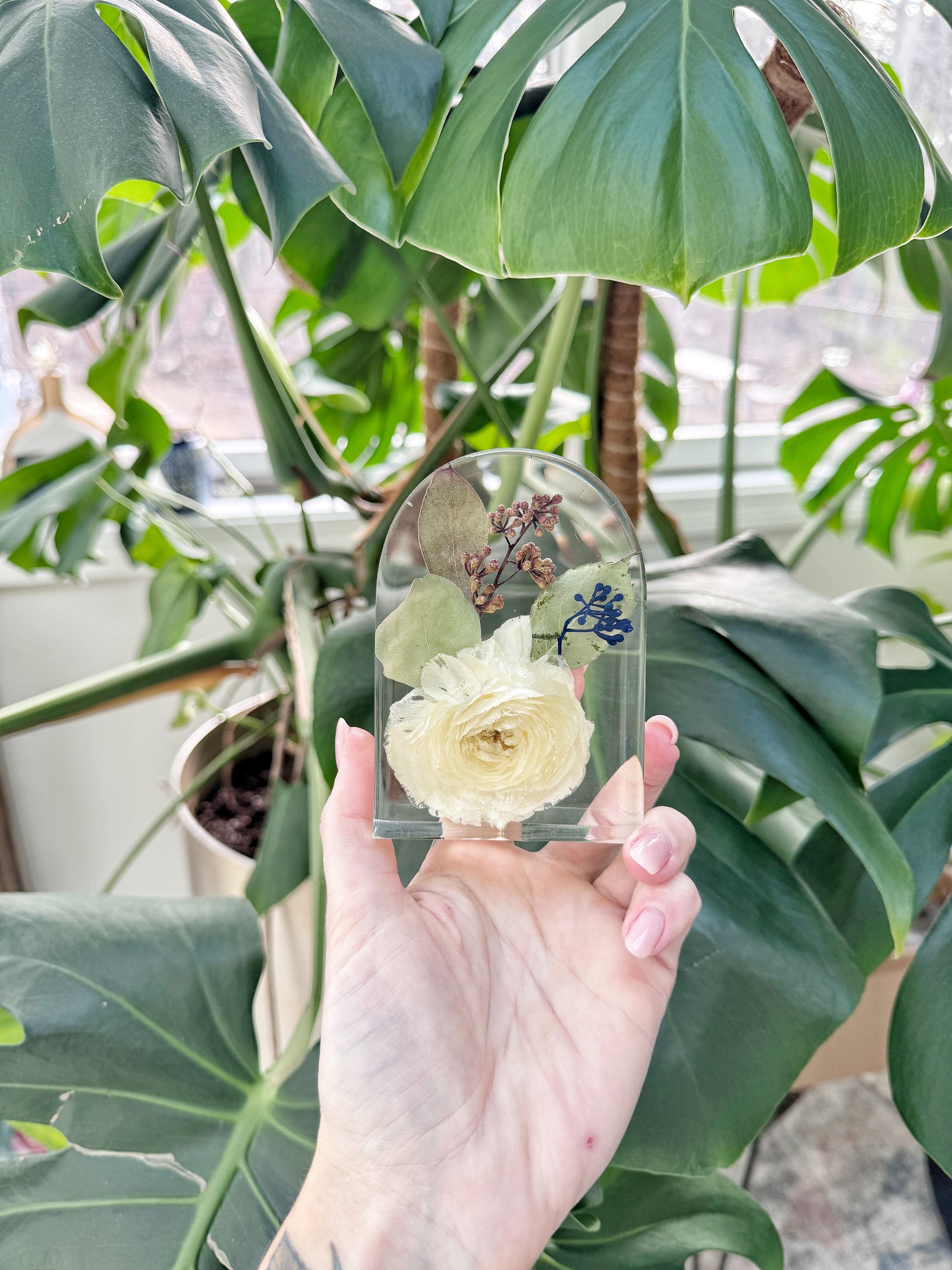 • Customizable Arrangement: Each piece is uniquely crafted to suit your flowers and create a meaningful memento.