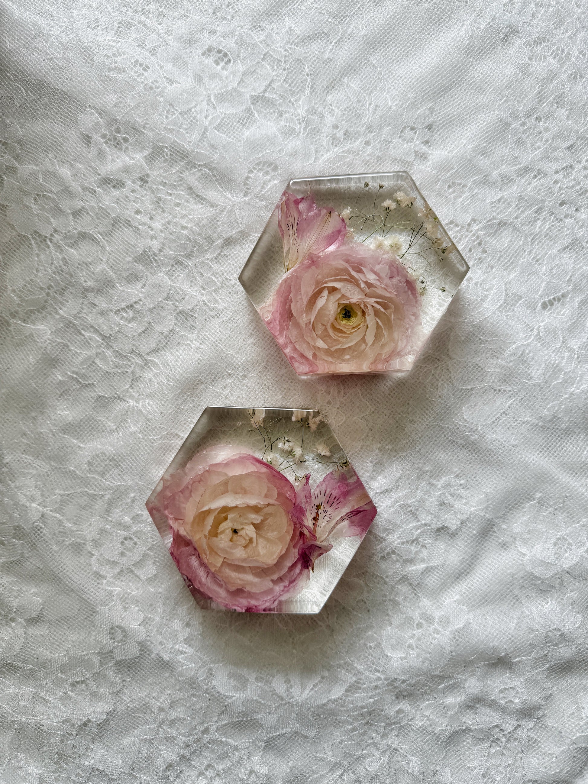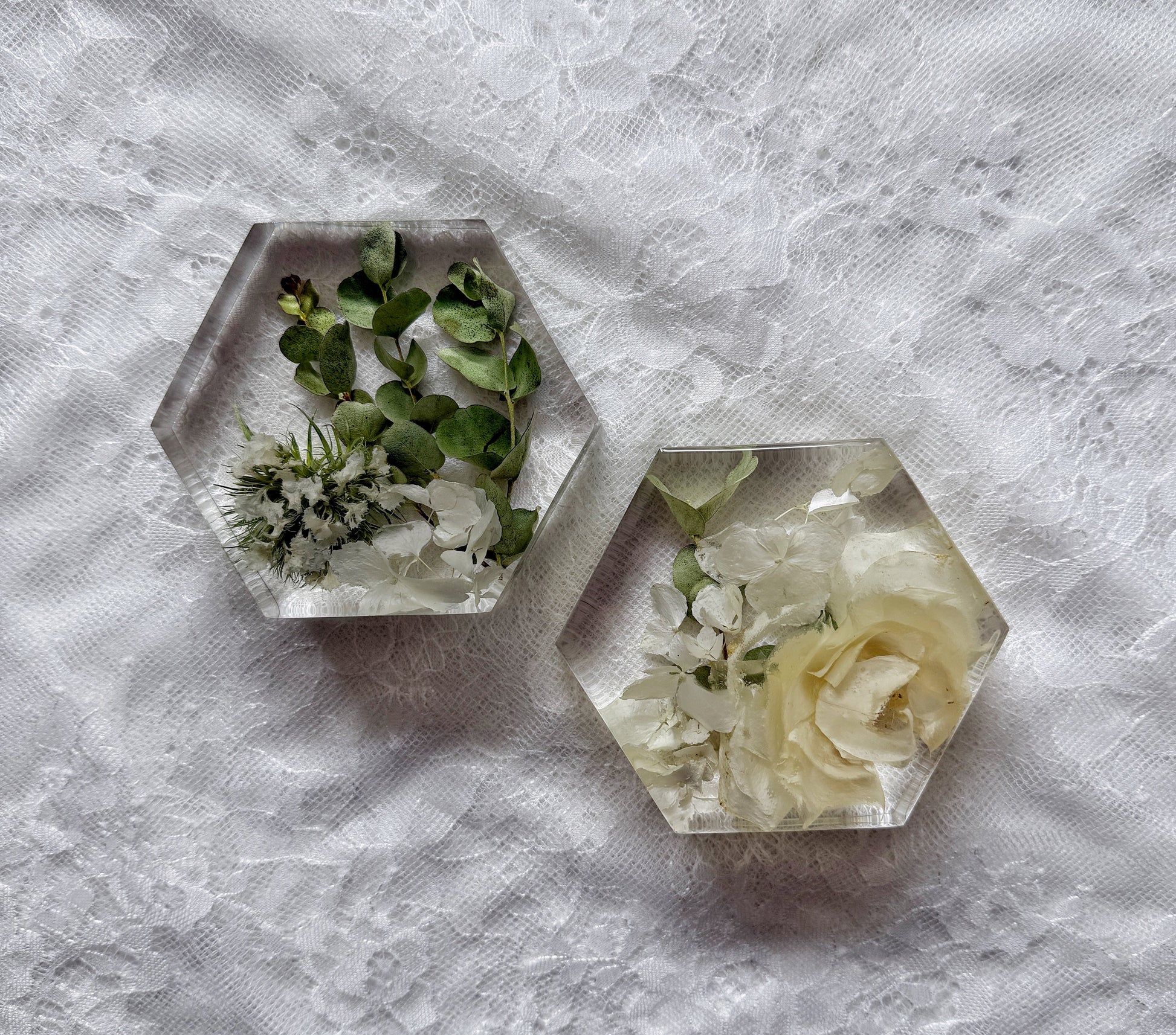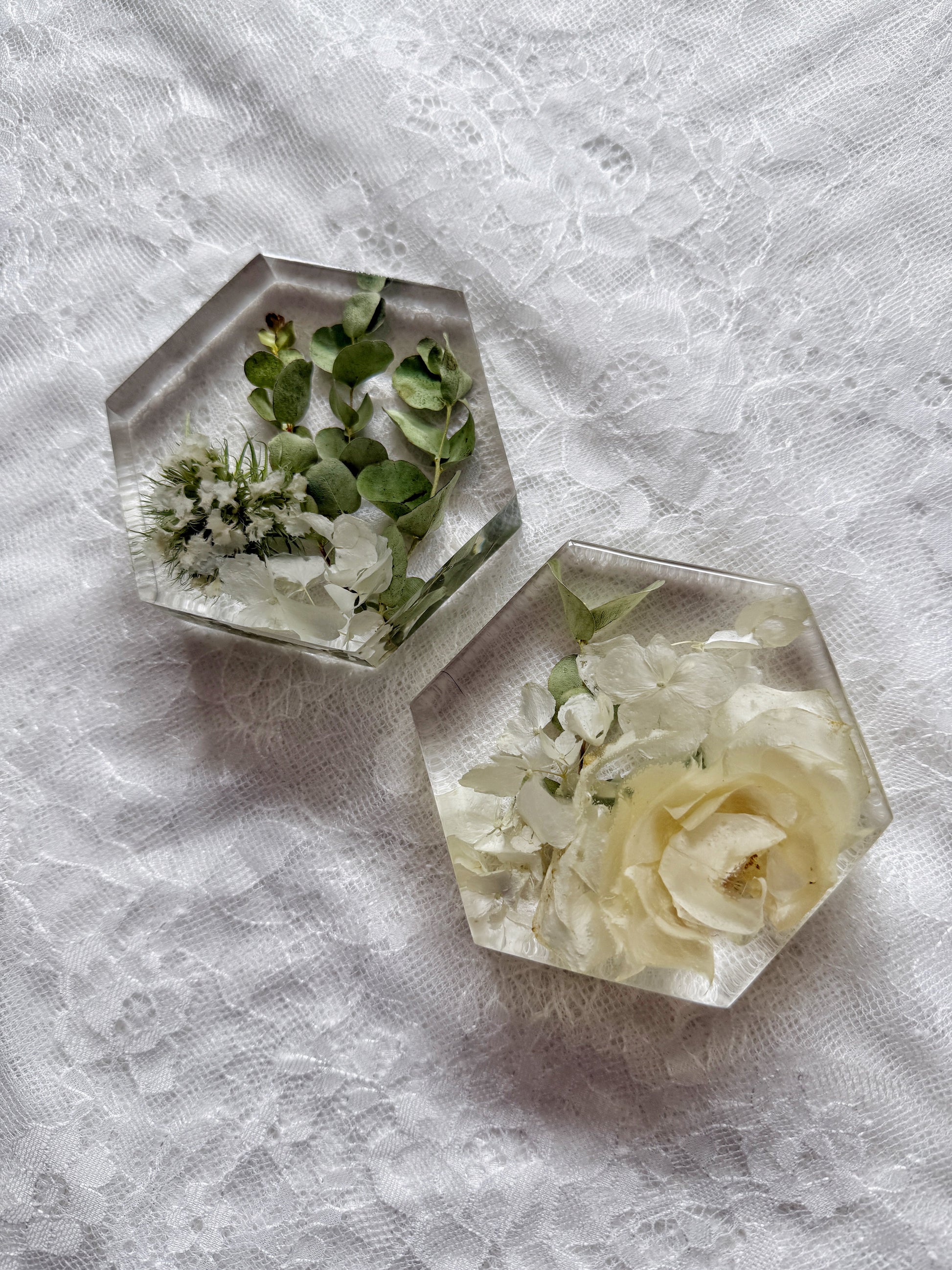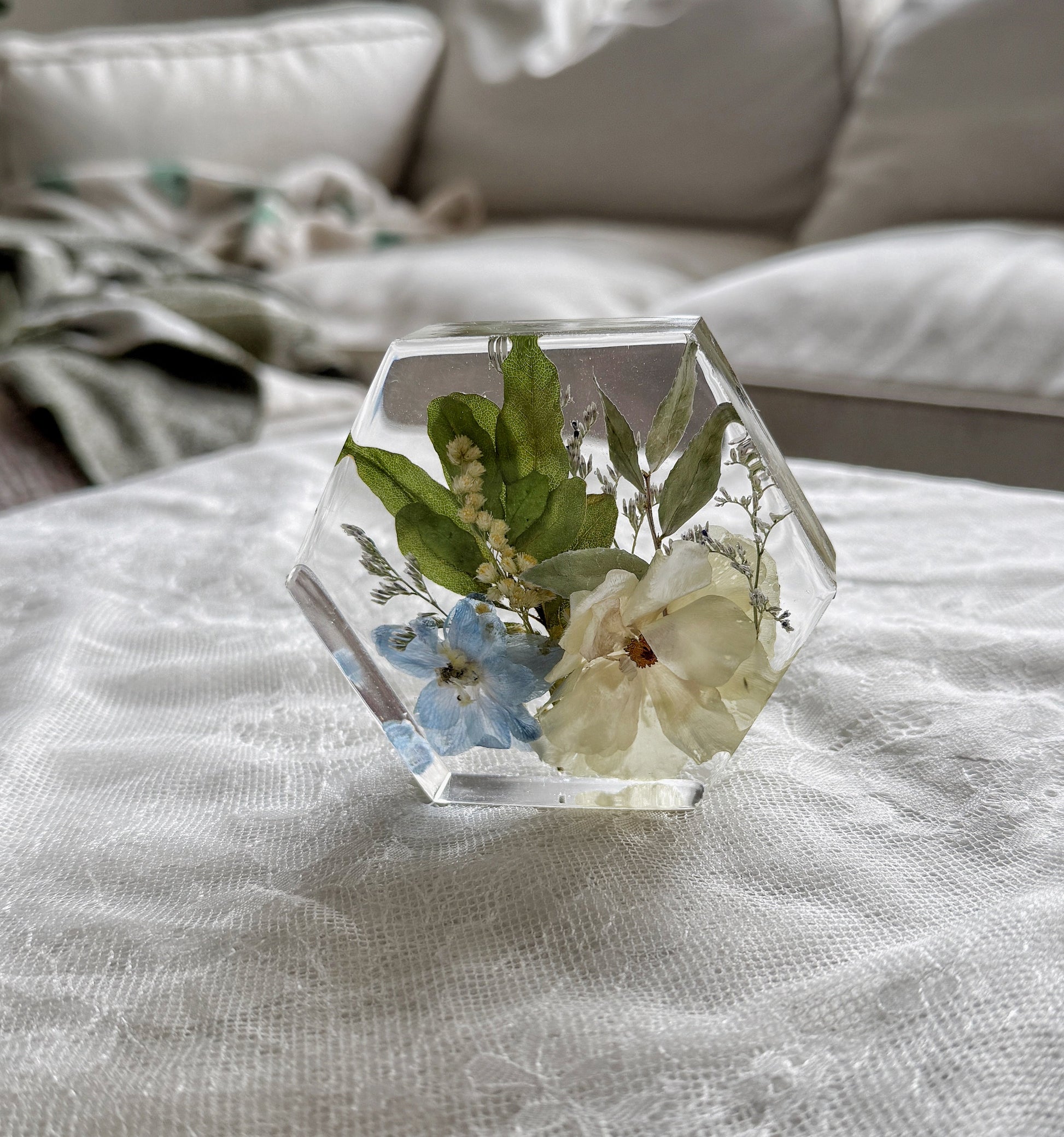 This baby hexagon is a petite yet meaningful way to preserve your cherished flowers. offering a stylish and sentimental addition to any space.
